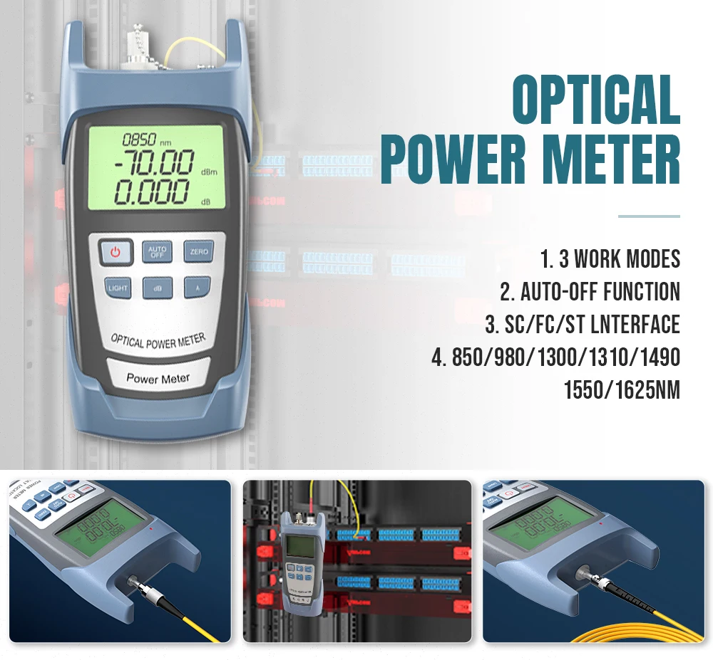 El localizador visual de fallas funciona a una longitud de onda de 650 nm, pero el medidor de potencia óptica solo puede detectar longitudes de onda de 850 nm o más. No se pueden usar juntos...