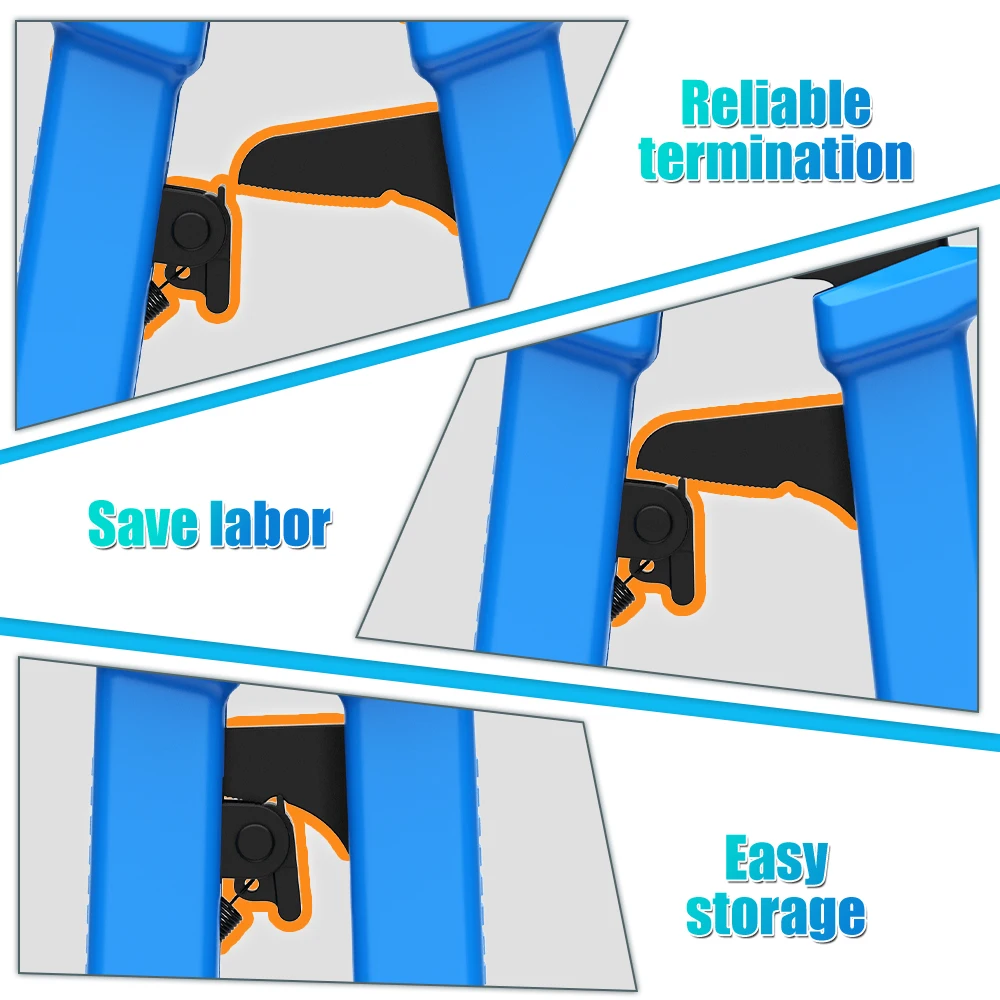 2.Precision Crimping dies was made of high-carbon steel for Any Ethernet or Telephone Cable, die head assembly provides 360 degrees of connector support for terminating modular plugs on stranded or solid cable