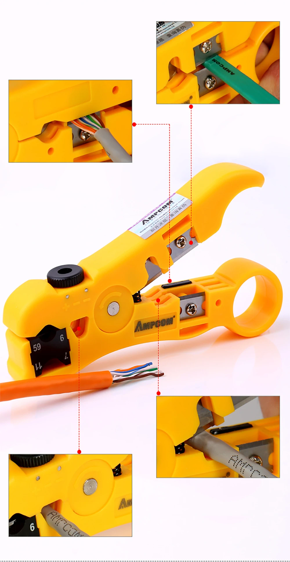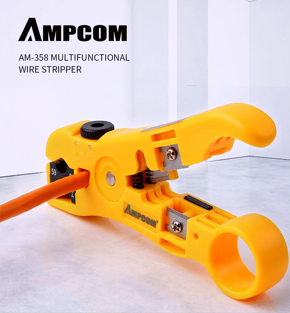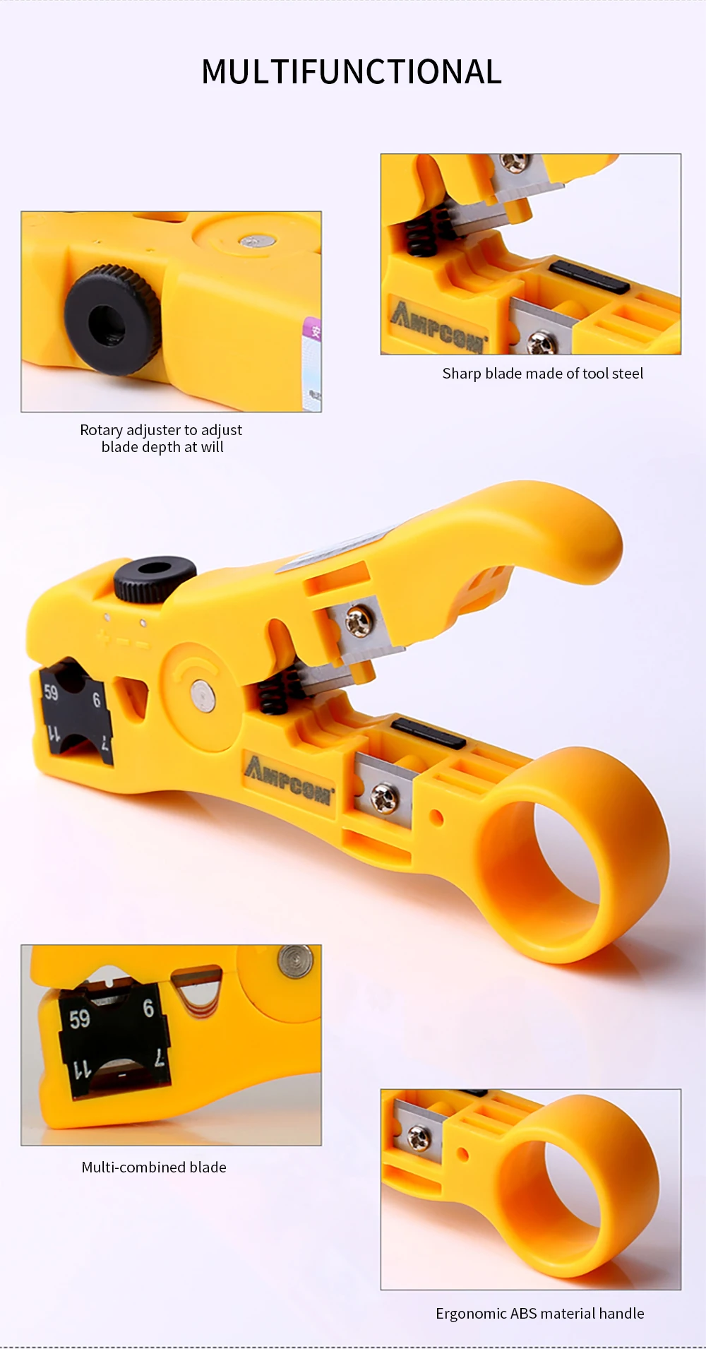 Comprar AMPCOM Herramienta de pelado todo en uno Pelacables Herramienta de compresión Pelacables coaxiales, cables redondos, cortador y cables planos