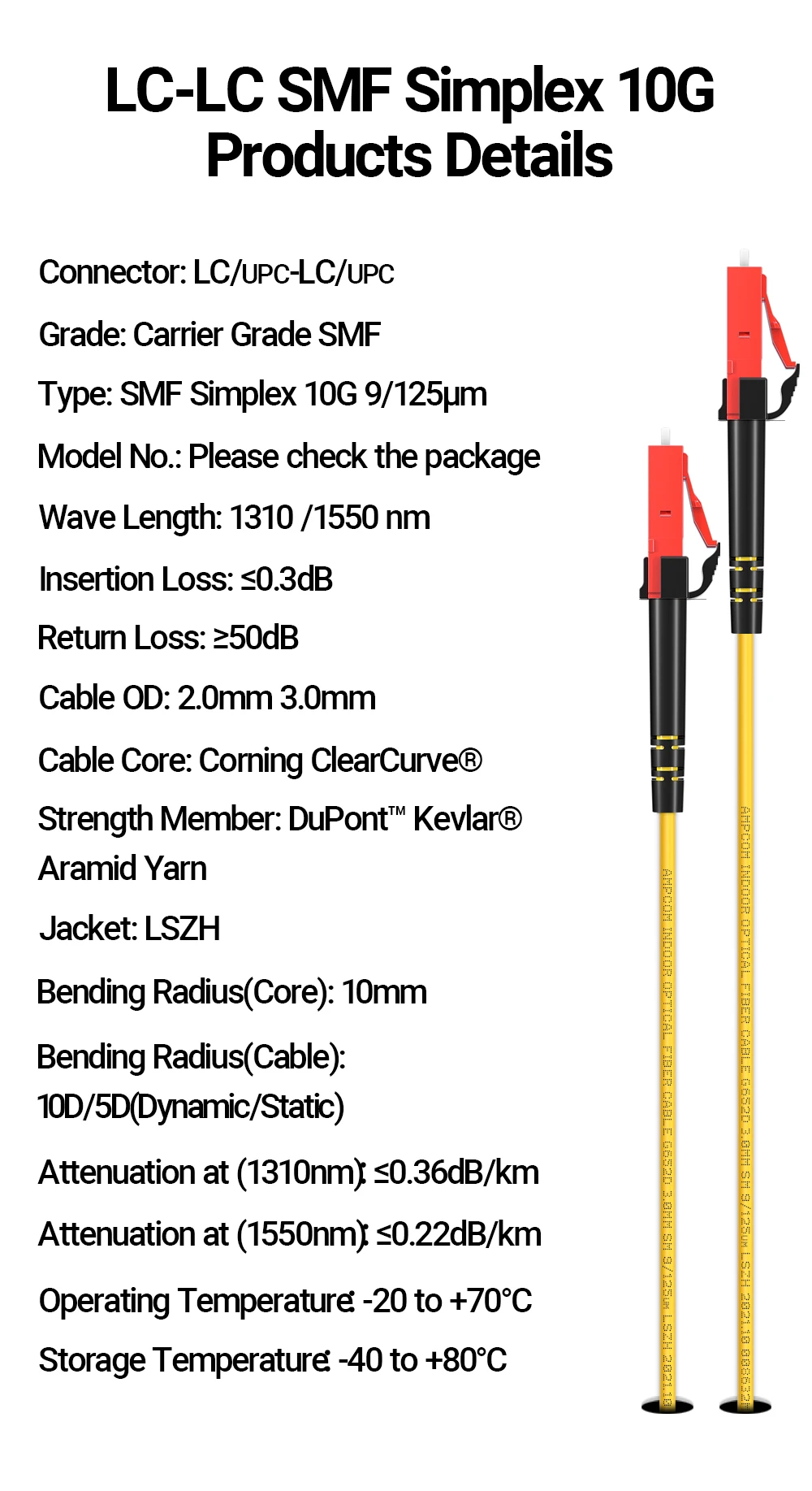 Cable de conexión de fibra óptica AMPCOM LC-LC SMF 9/125μm Simplex/Duplex