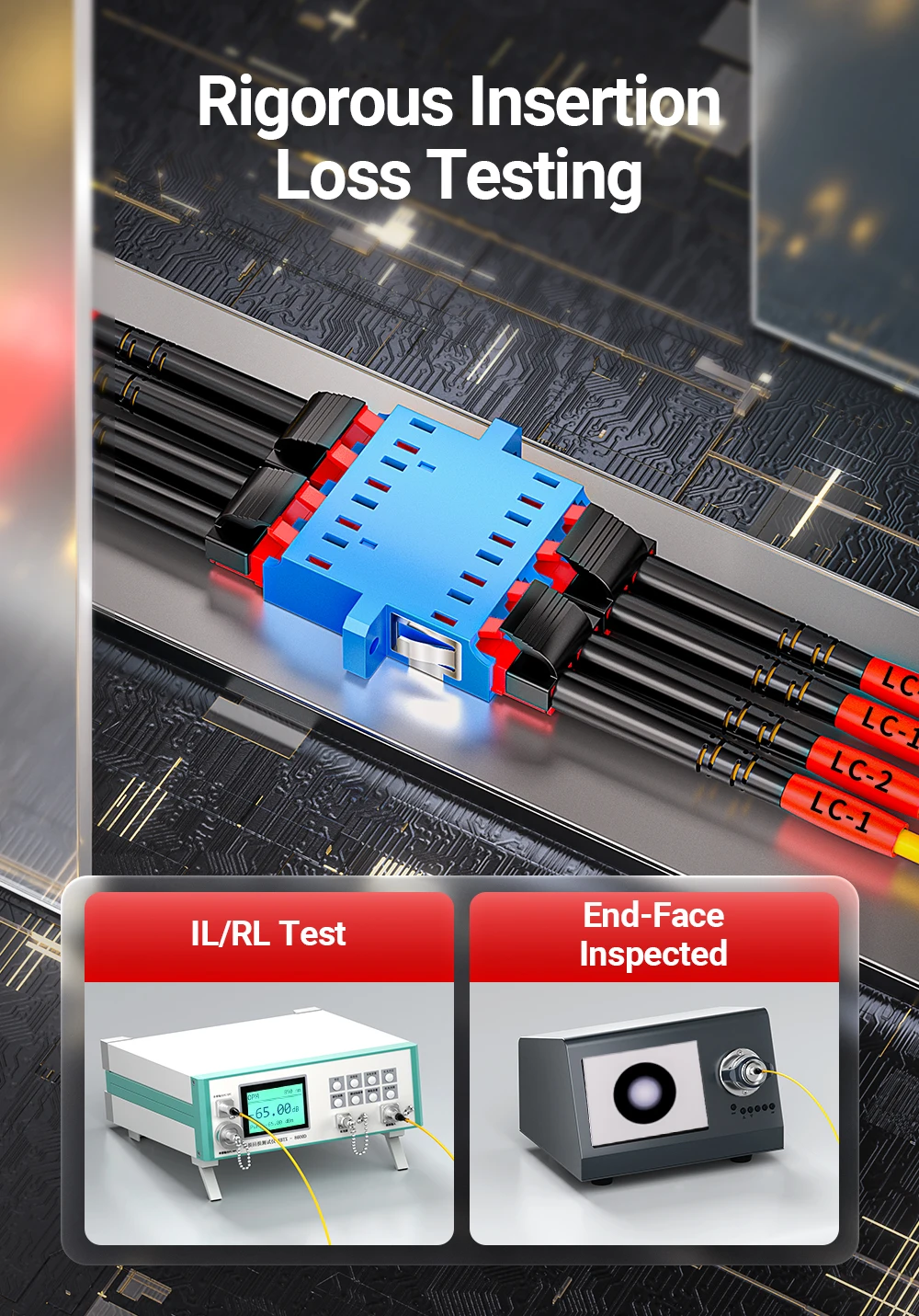 Rectificado preciso de la cara final del UPC para garantizar una transmisión de datos estable.Pérdida de inserción≤0,2 dB, pérdidas de retorno ≥50 dB