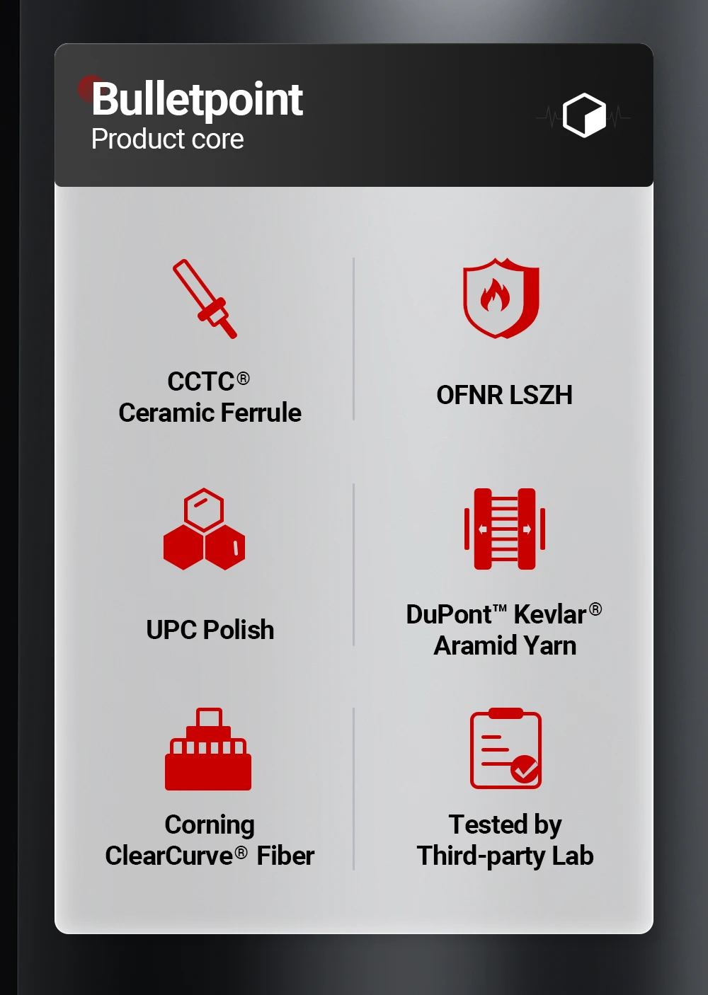 Núcleo cerámico de precisión/junta LSZH/pulido de precisión UPC/hilo de aramida de alta resistencia/núcleo de fibra de grado A de alta calidad/certificación autorizada