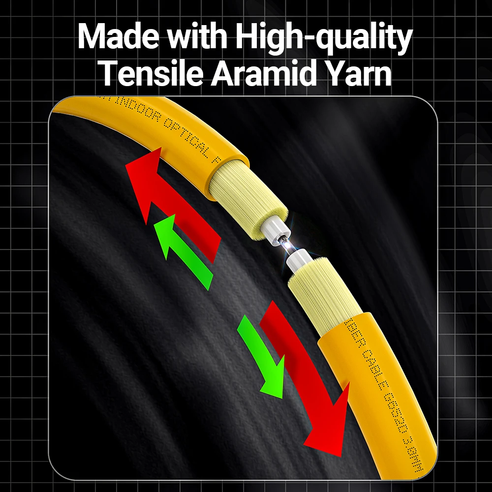 El cable de fibra óptica insensible en curvatura monomodo OS2 de 9/125 μm tiene menos atenuación cuando se dobla o se retuerce en comparación con los cables de fibra óptica tradicionales y esto hará que la instalación y el mantenimiento de los cables de fibra óptica sean más eficientes.También puede ahorrar más espacio para su cableado de alta densidad en centros de datos, redes empresariales, salas de telecomunicaciones, granjas de servidores, redes de almacenamiento en la nube y cualquier lugar se necesitan cables de conexión de fibra.