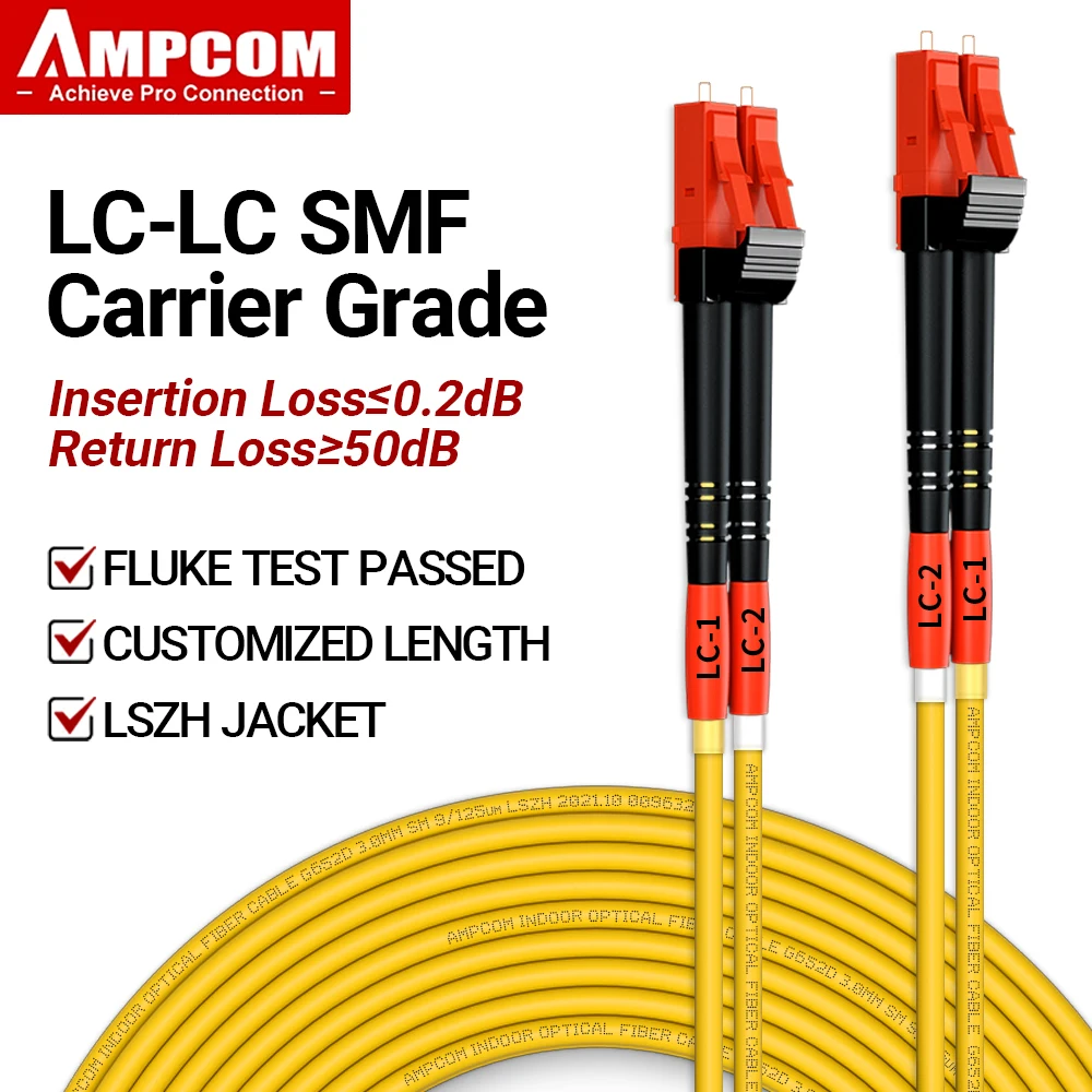 Cable de conexión de fibra óptica AMPCOM LC-LC SMF 9/125μm Simplex/Duplex