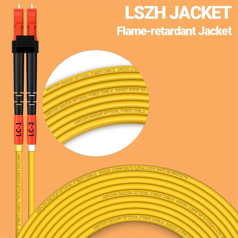 Cable de conexión de fibra óptica dúplex AMPCOM SMF 9/125μm