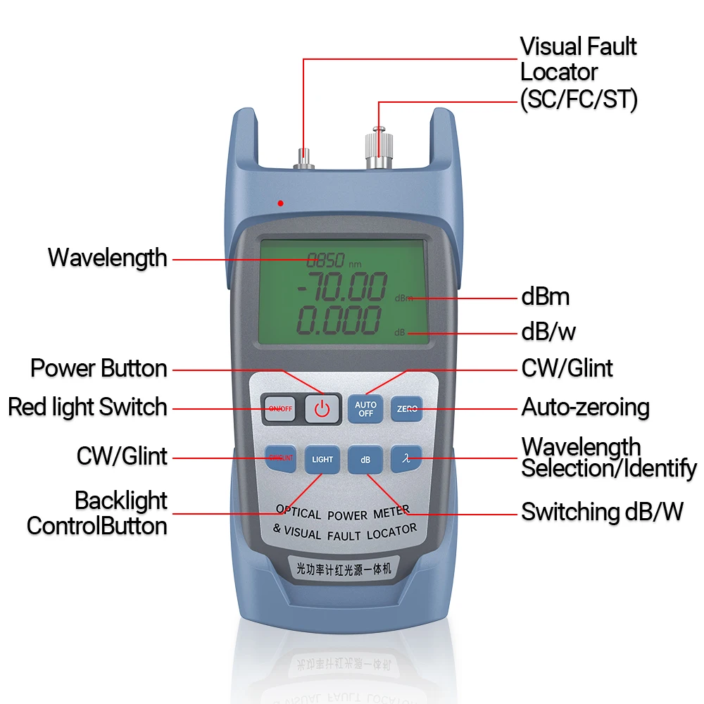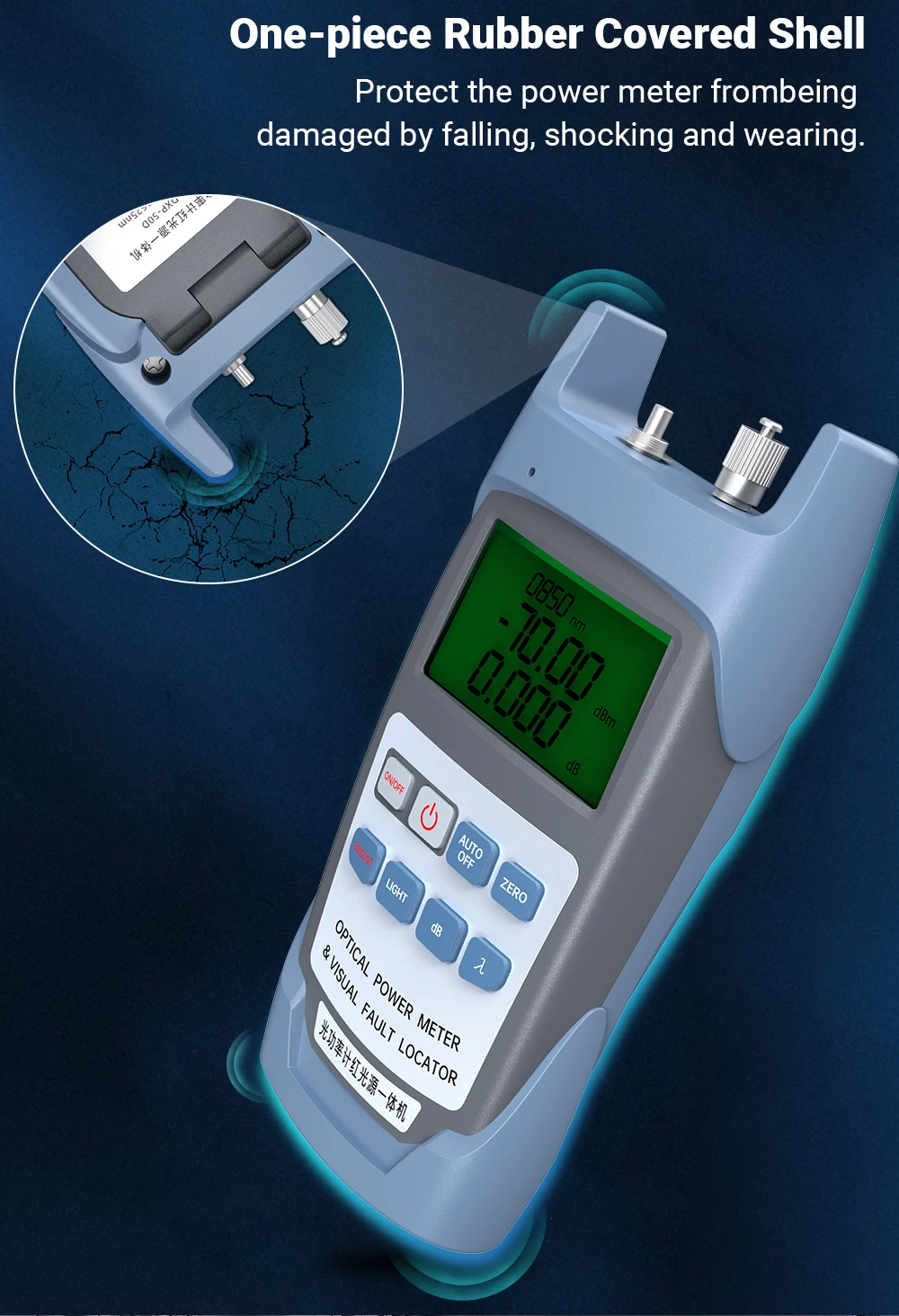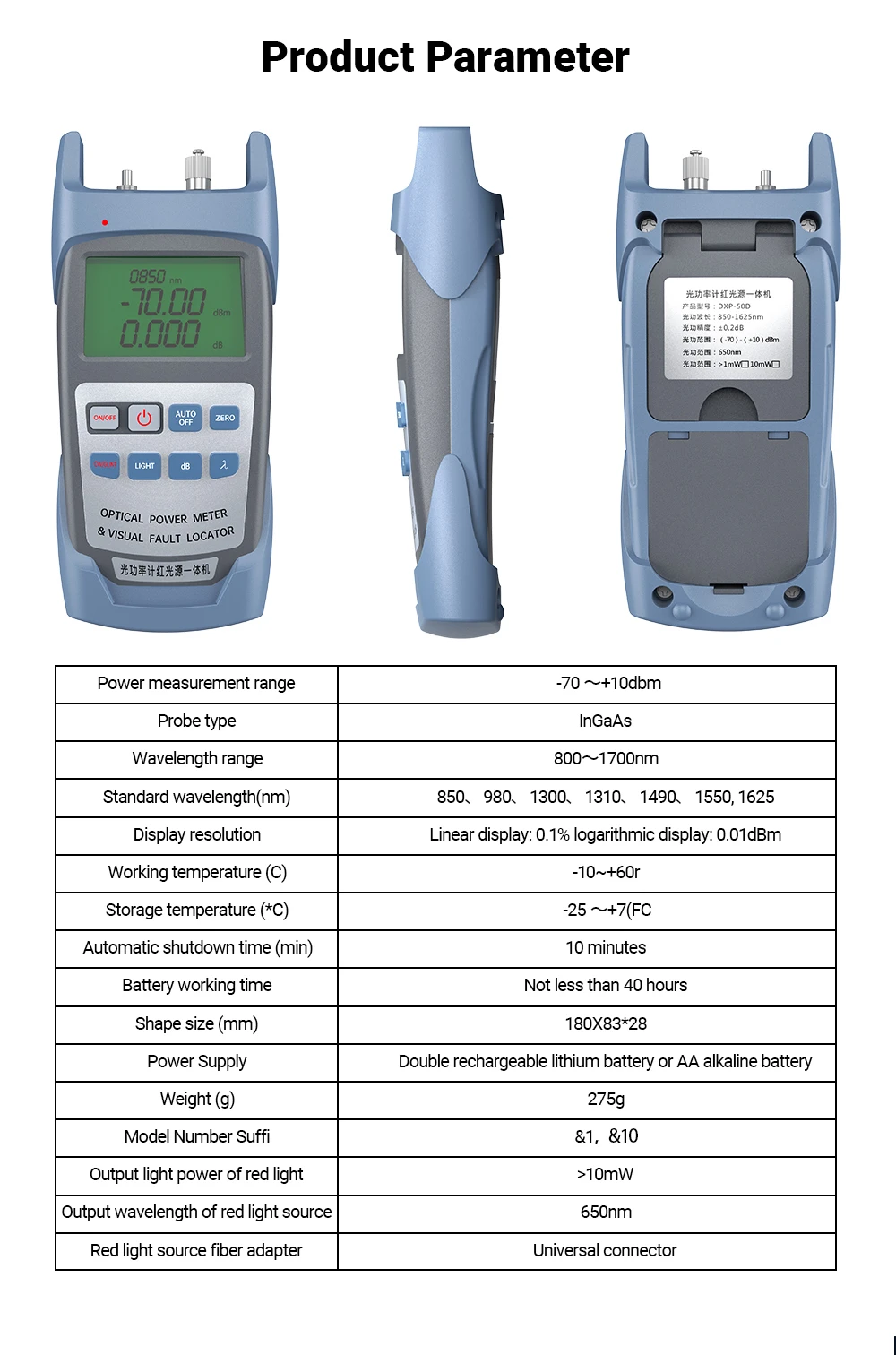 AXP-30D multímetro óptico de mano es una unidad integrada de medidor de potencia óptica y localizador de fallas visual con tamaño compacto y ligero. Permite realizar potencia óptica, mediciones de pérdida y seguimiento de fallas de fibra visualmente, que se utiliza principalmente en redes FTTx y pruebas de redes de fibra. Este Probador puede realizar pruebas de circuito cerrado y también puede funcionar individualmente.