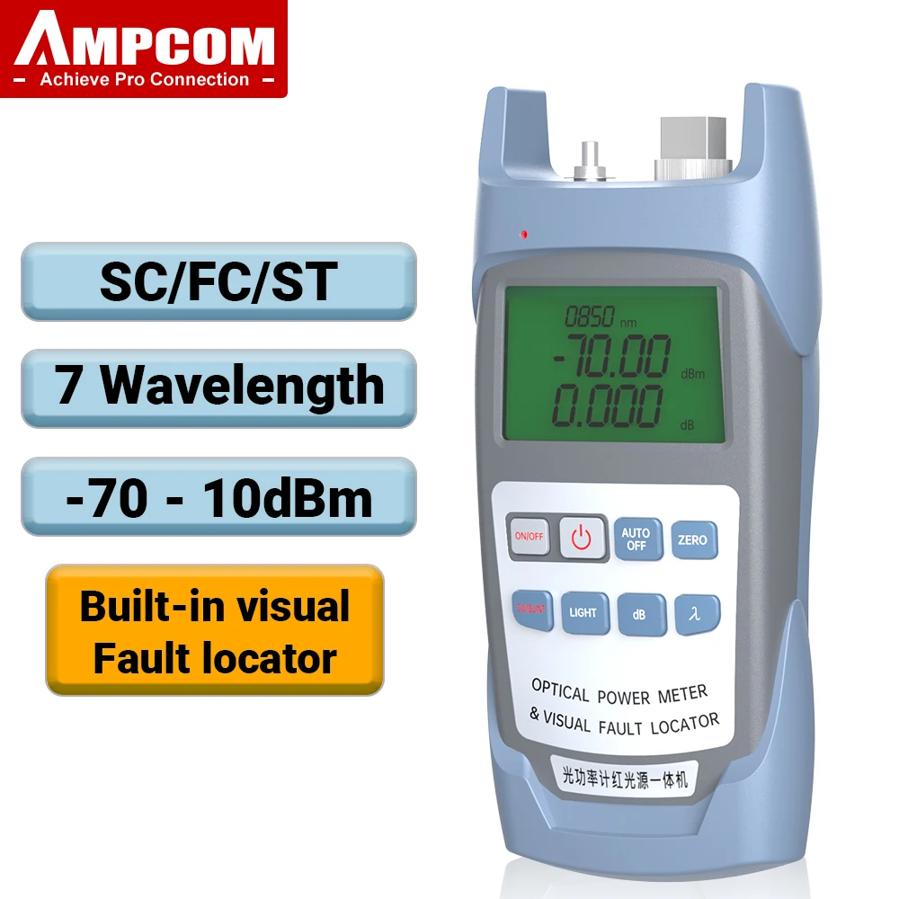 Comprar AMPCOM-medidor de potencia óptica de fibra con localizador Visual de fallos, probador de fibra, conector SC FC ST, equipo de prueba óptica (-70 ~ 10dBm)