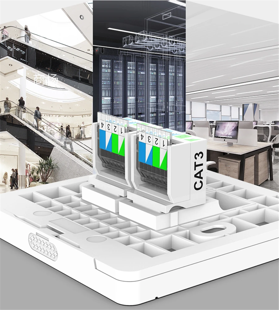 • Es adecuado para la comunicación entre el equipo y el área de trabajo para realizar la transmisión de la señal y cumplir con los requisitos de los estándares de transmisión EIA/TIA 568A/B.