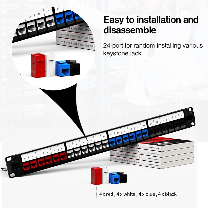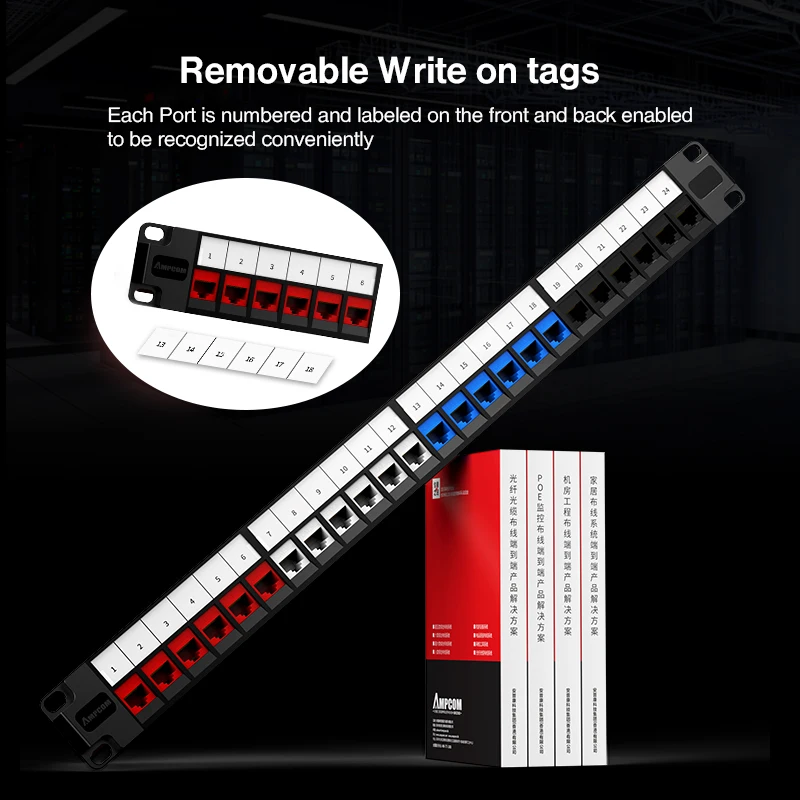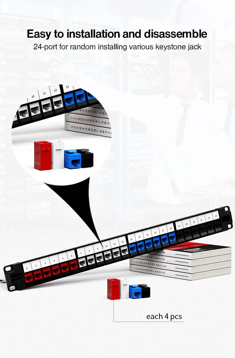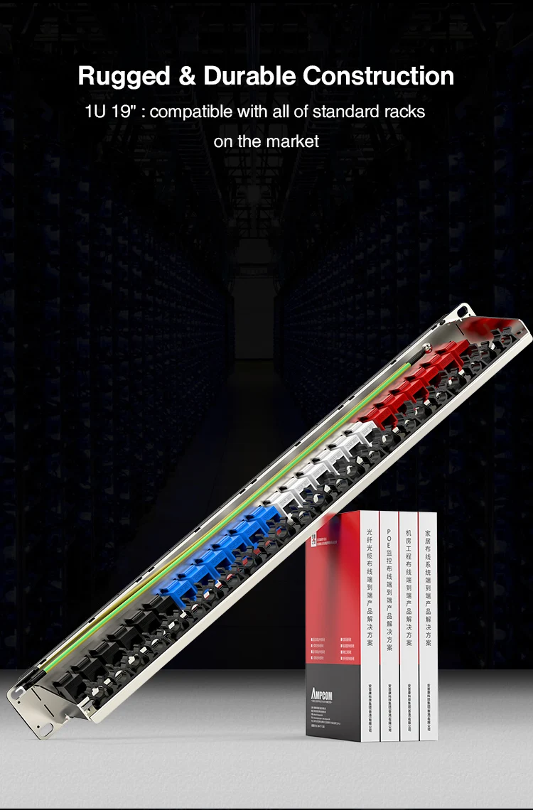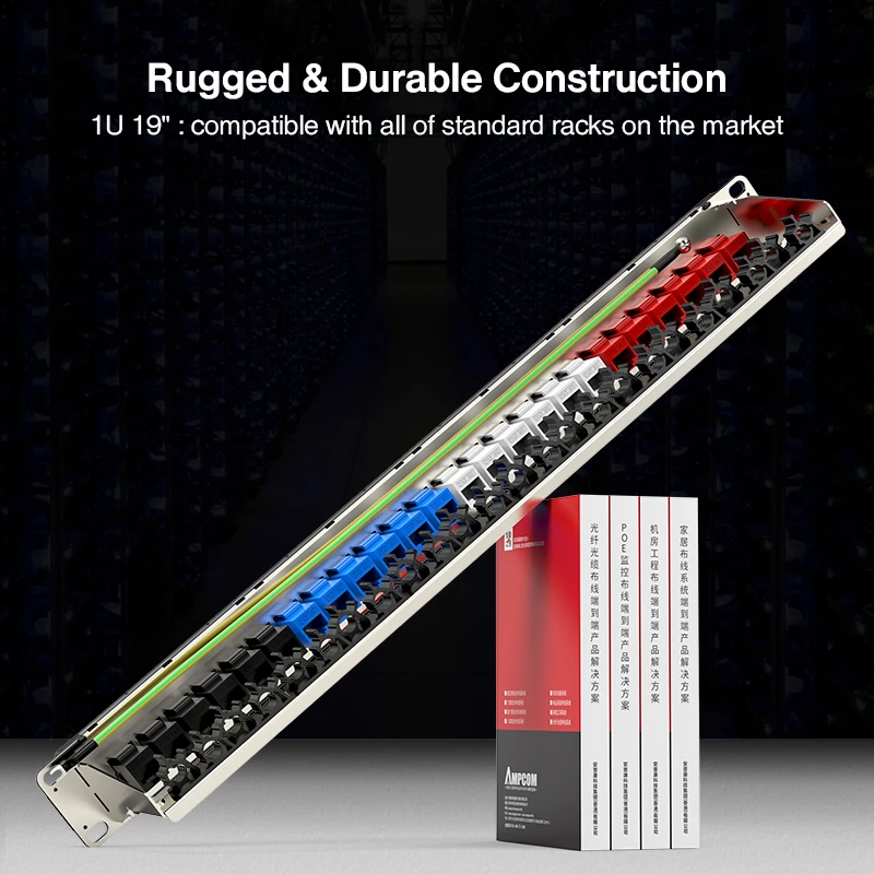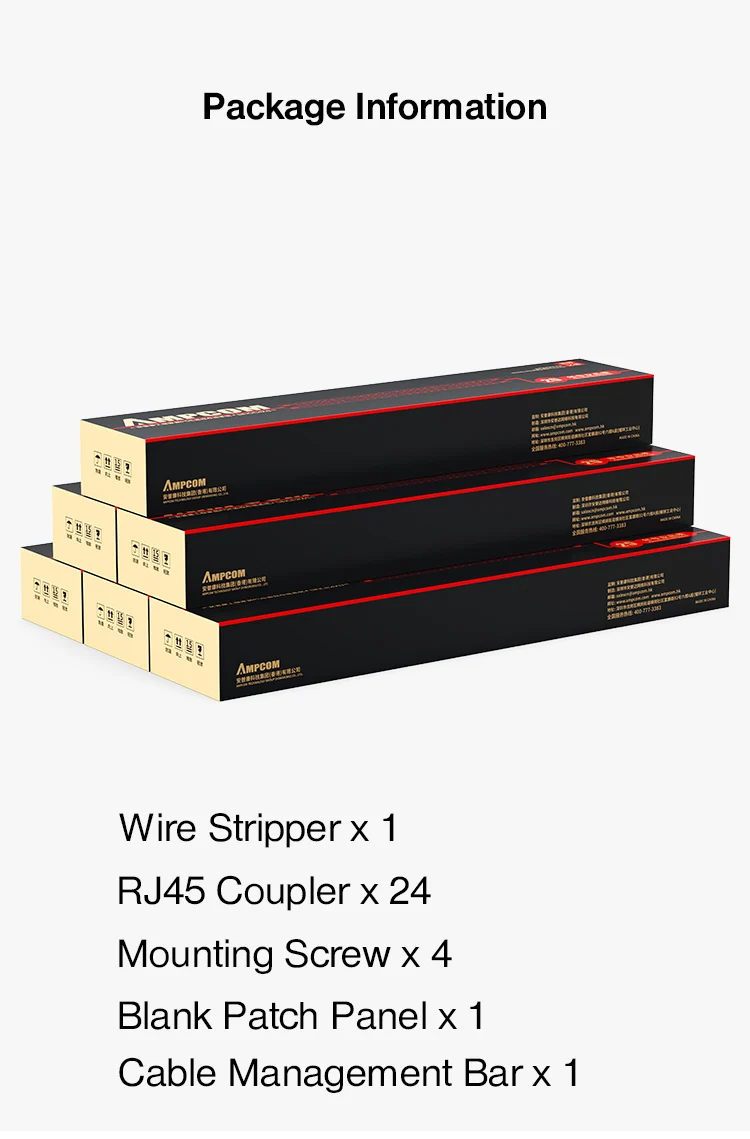 1.AMPCOM 24-port RJ45 coupler patch panel is universally compatible with 19” racks, cabinets, or wall mount brackets with 1U (1.75") standard height
