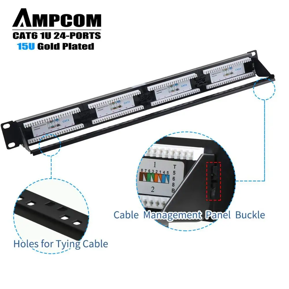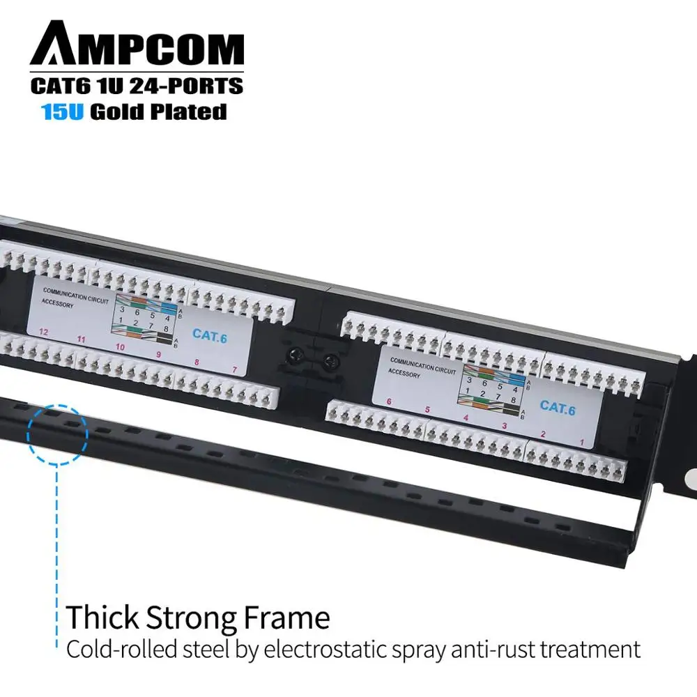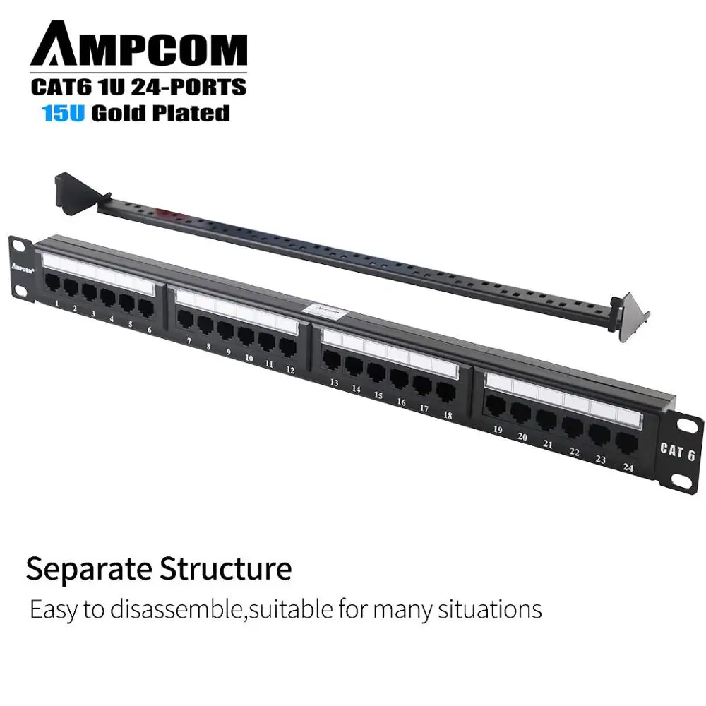 Comprar AMPCOM-Panel de parche CAT6 serie Premium, chapado en oro de 15 Ω, 1U, 24 puertos, montaje en pared