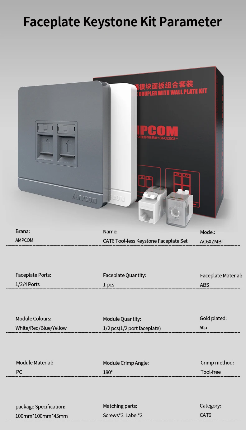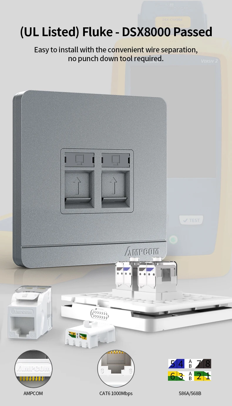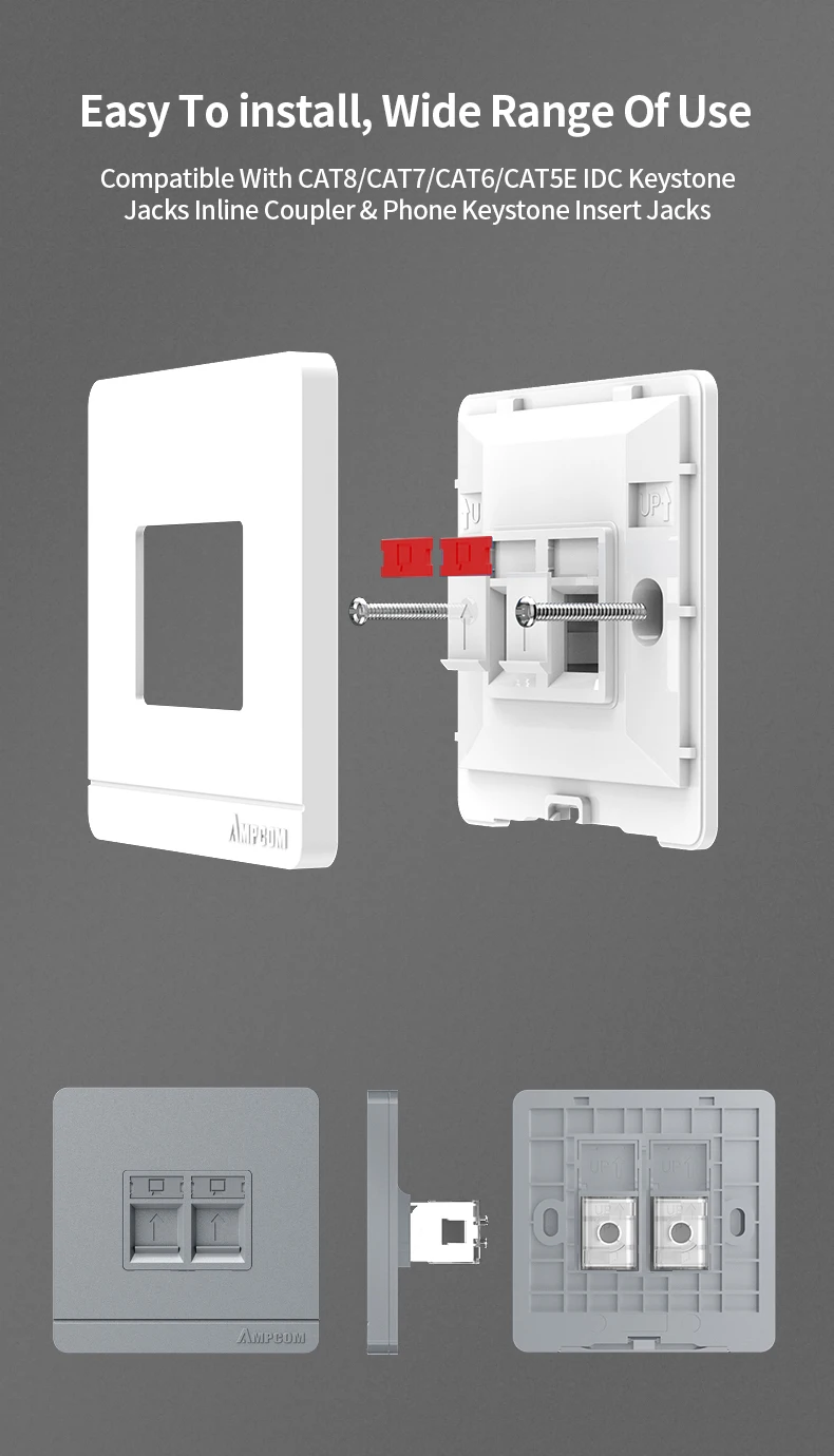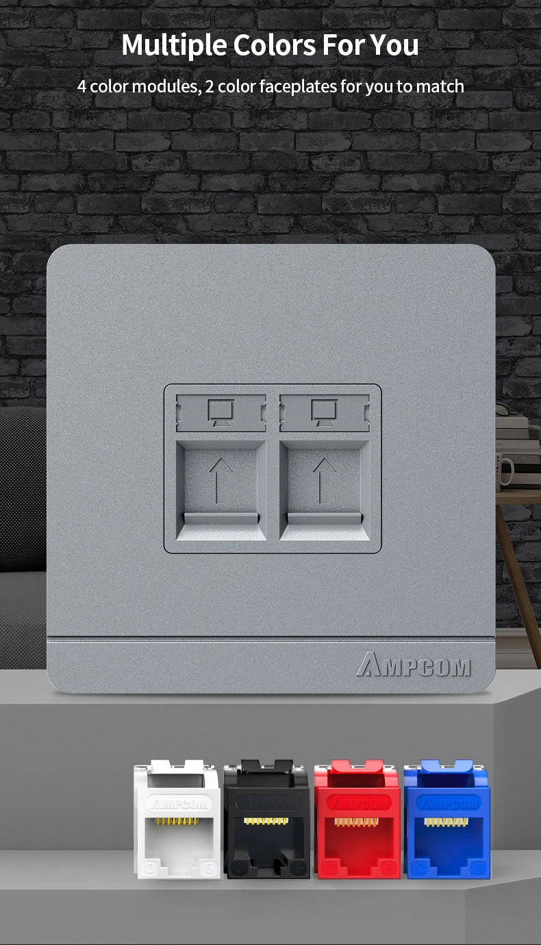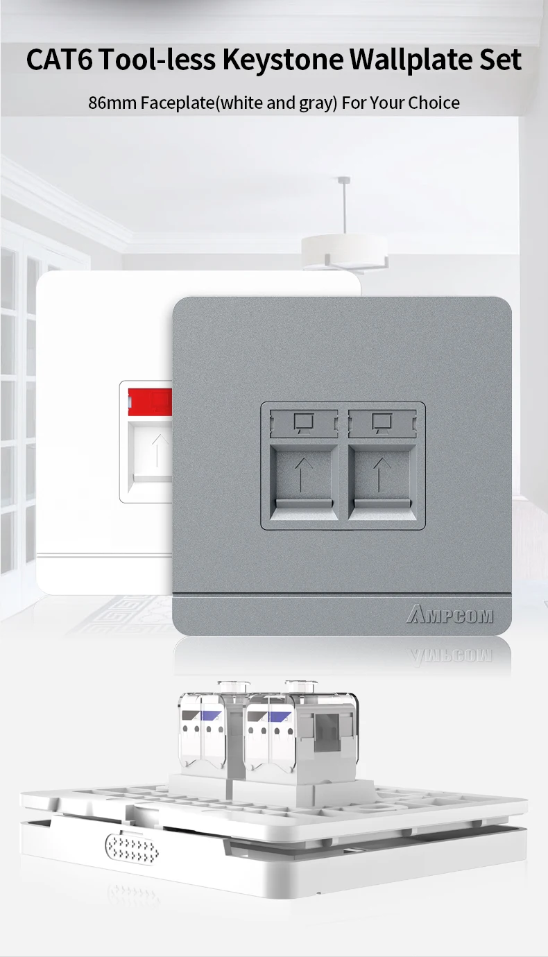 Comprar AMPCOM-placa frontal de 86mm con conector CAT6 1gbps UTP Keystone, No requiere herramienta de perforación, conjunto de placa de pared de acoplador de módulo