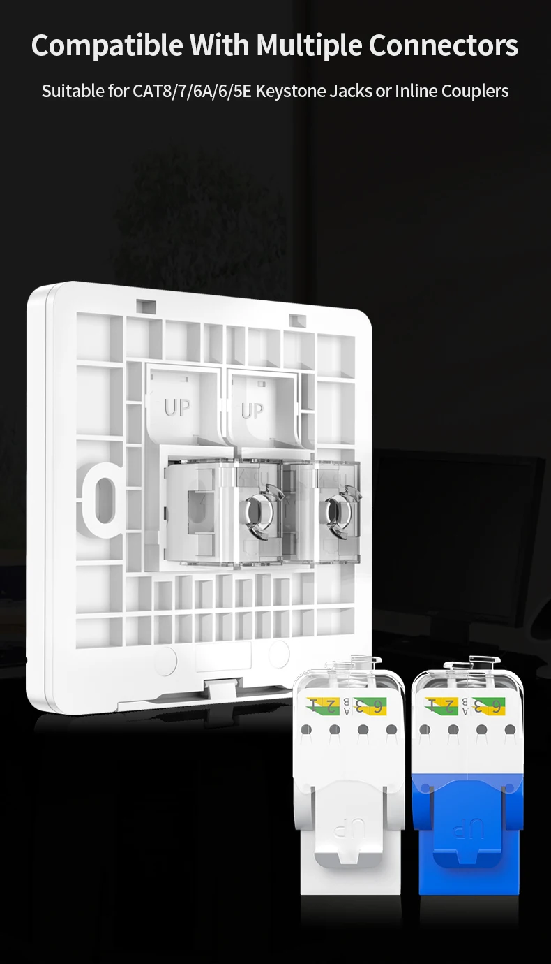 Adecuado para conectores Keystone CAT8/7/6A/6/5E o acopladores en línea