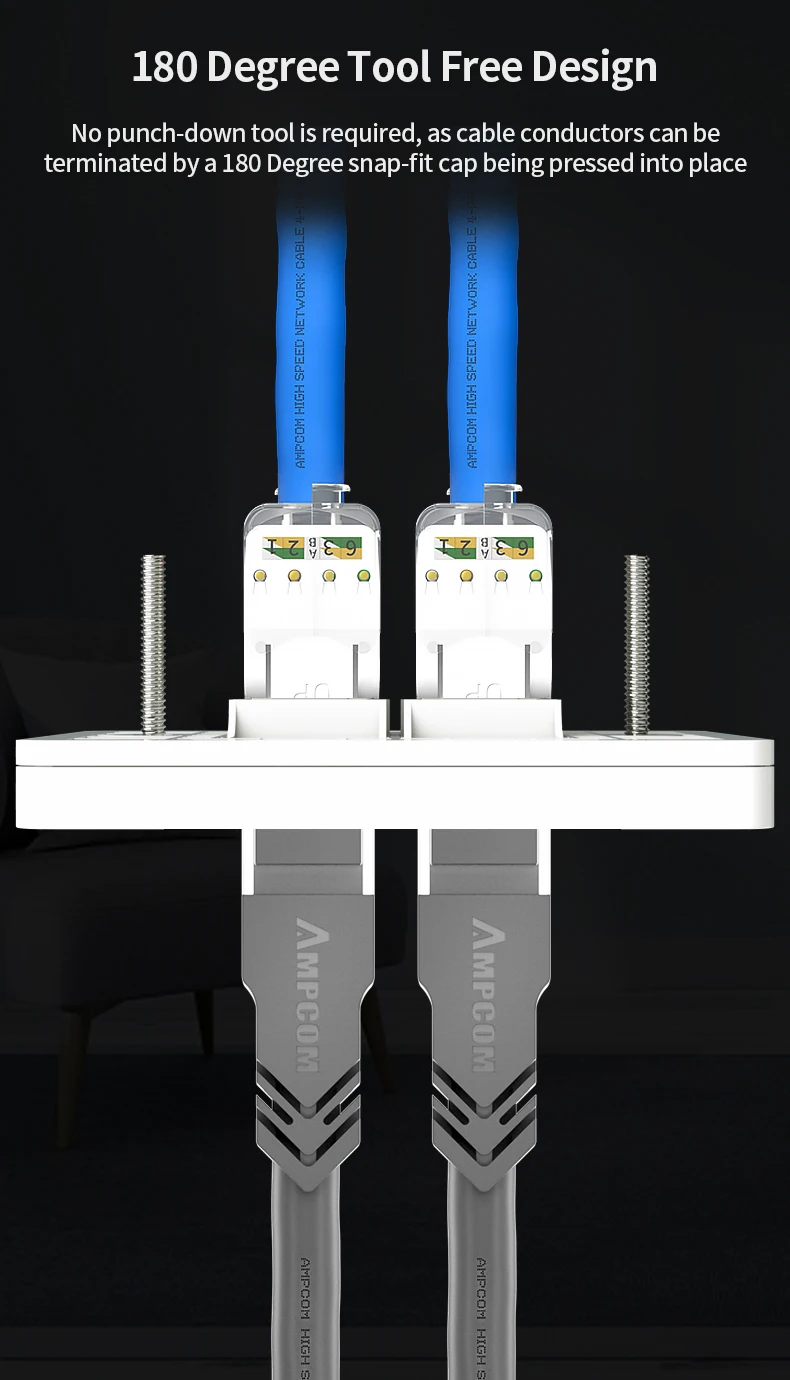 Diseño sin herramientas con etiquetado codificado por colores T568A y T568B para una fácil terminación del cable
