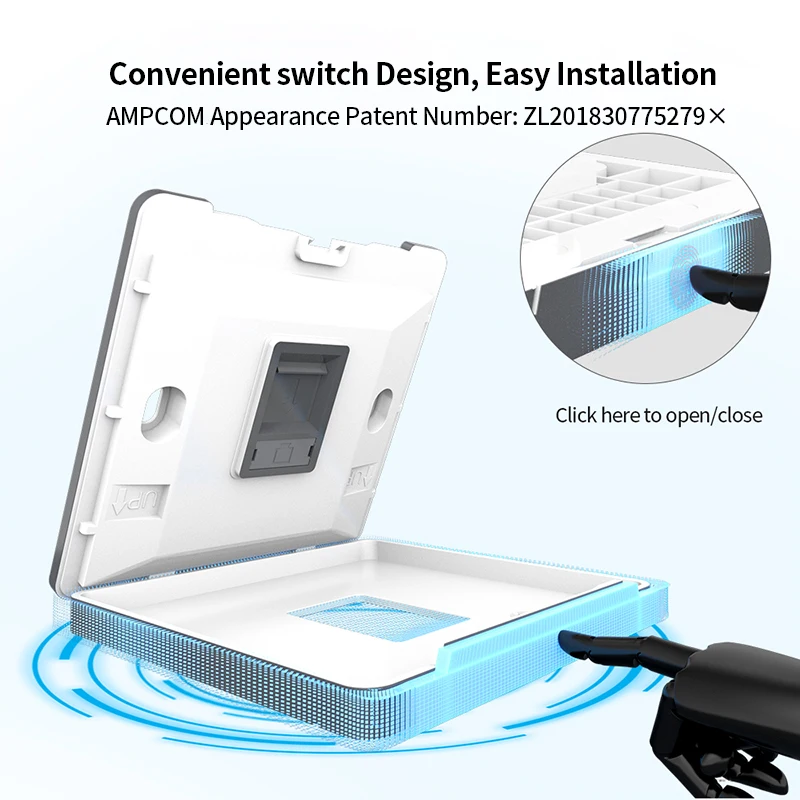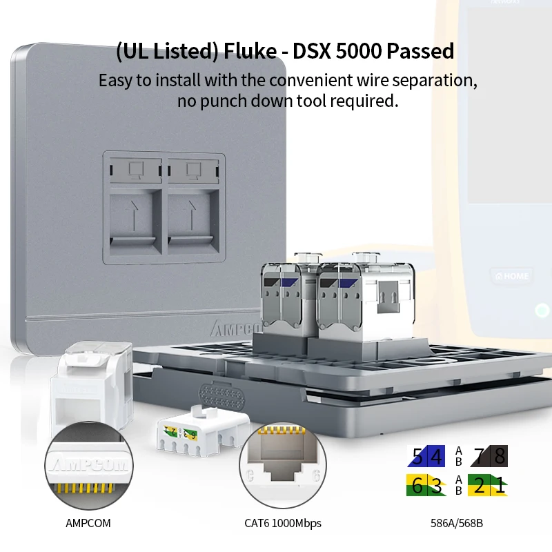Comprar AMPCOM-placa frontal de 86mm con conector CAT6 1gbps UTP Keystone, No requiere herramienta de perforación, conjunto de placa de pared de acoplador de módulo