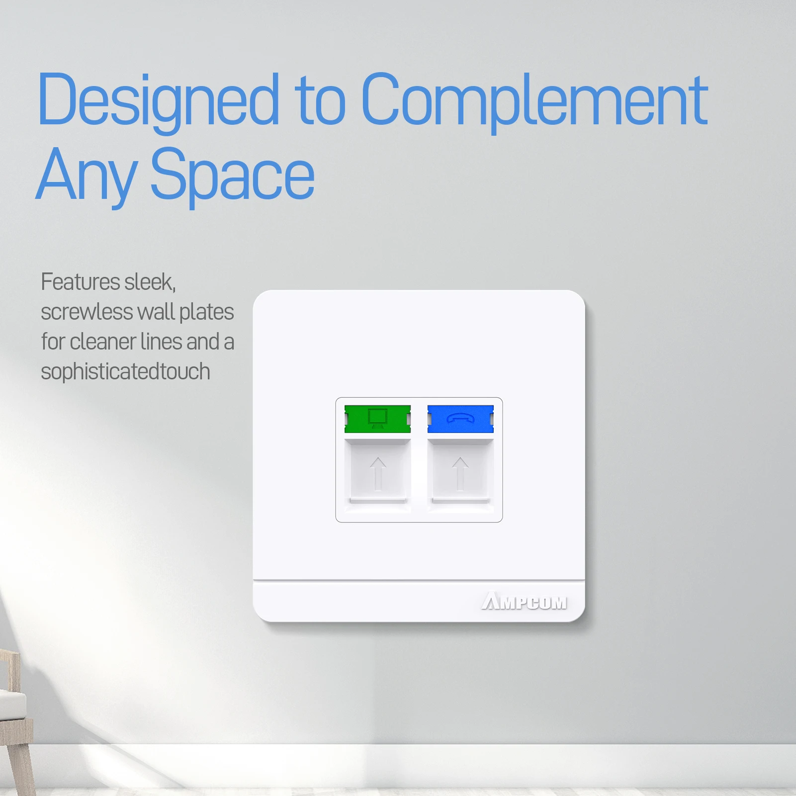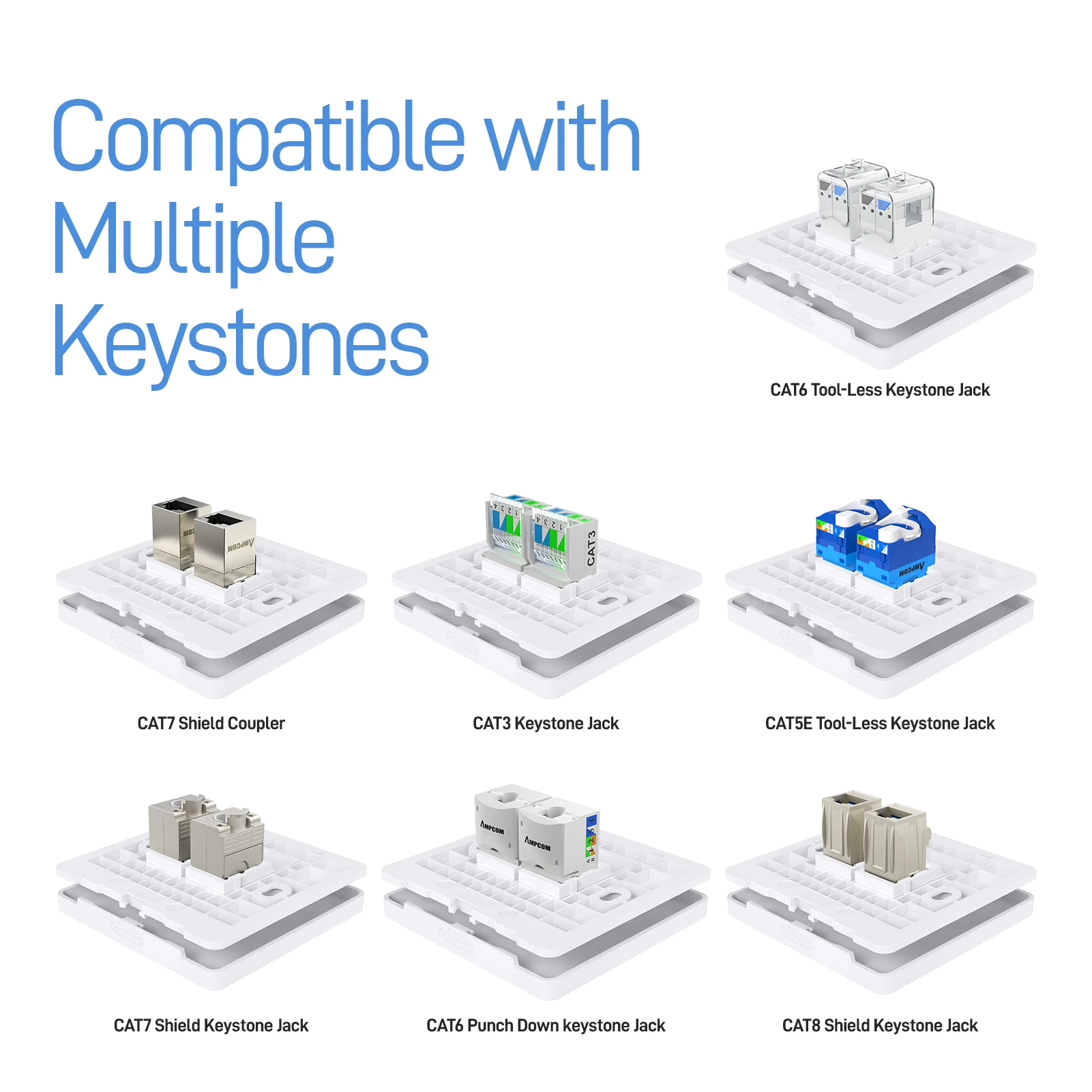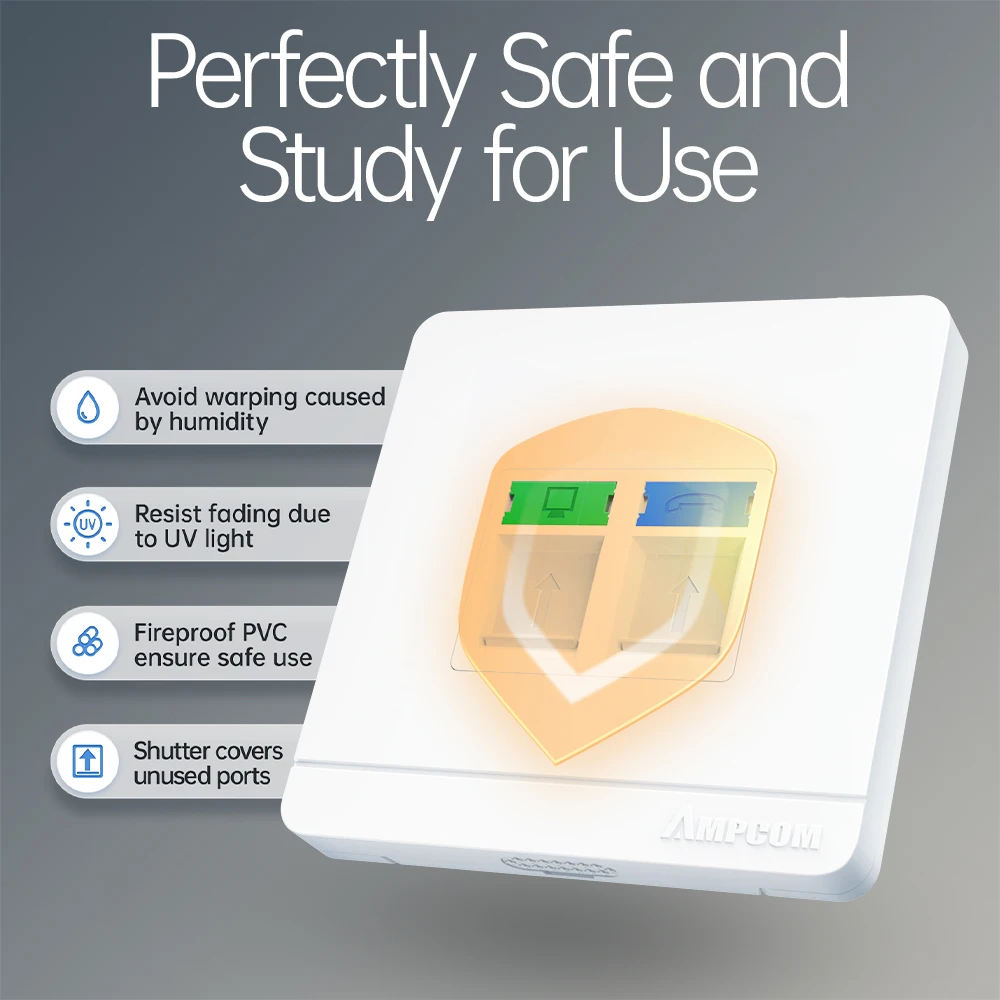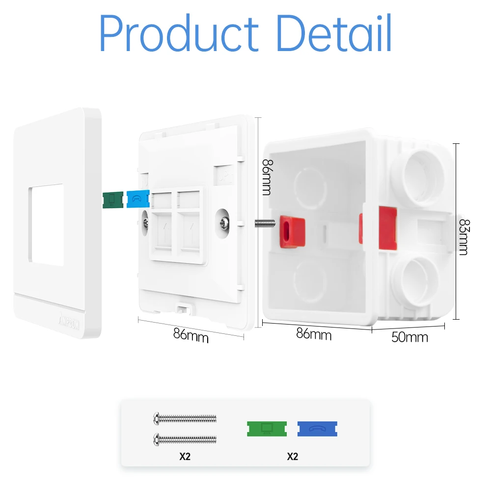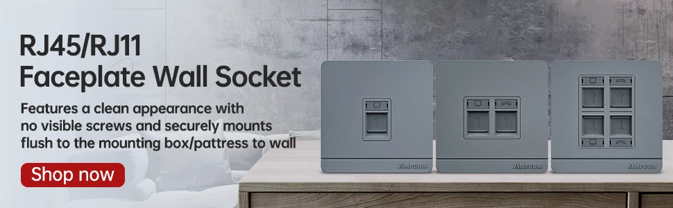 Comprar AMPCOM placa frontal de pared tipo 86 con caja de conexiones de montaje, Panel de montaje de toma de red telefónica para módulo RJ45 RJ11