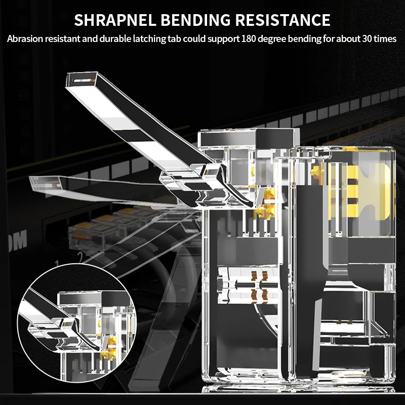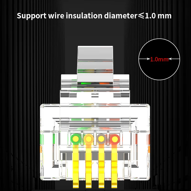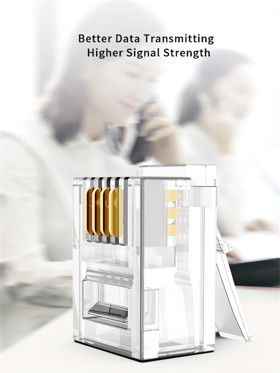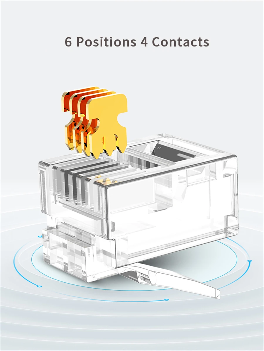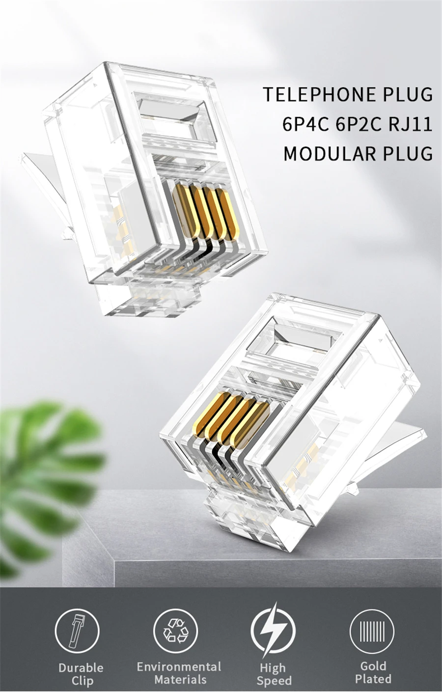 • Utilice este enchufe para colocar el cable telefónico. Cables de contacto chapados en oro para una mejor transmisión de datos y una mayor fuerza de señal. Enchufes para cable sólido o trenzado CAT 3.