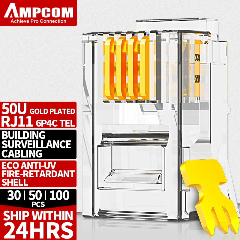 Comprar AMPCOM RJ11 enchufe 6P4C 6P2C teléfono Modular Cable conector adaptador engarzado teléfono Internet enchufe Modular Jack
