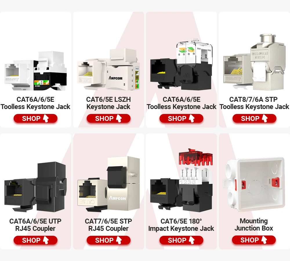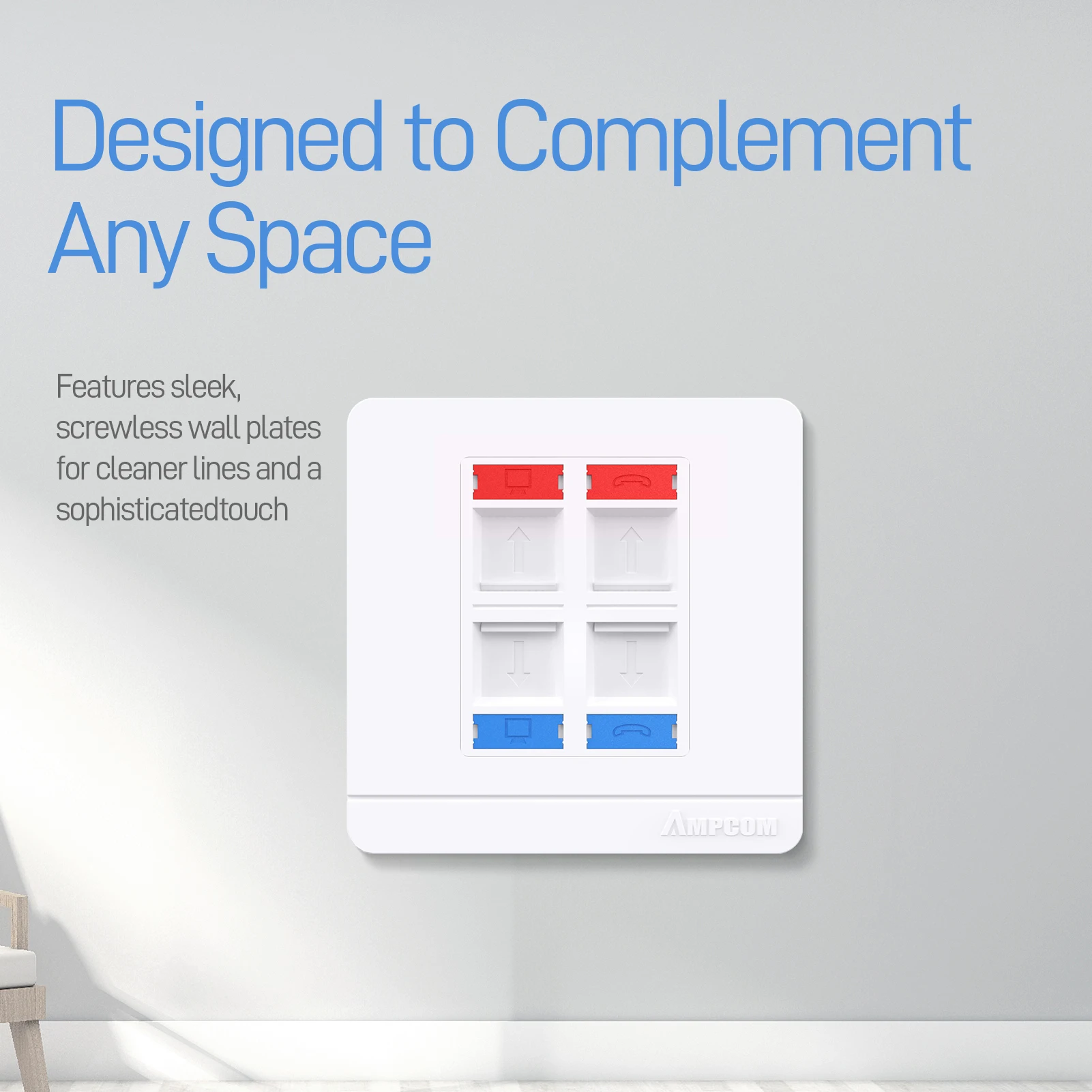 Comprar AMPCOM RJ11 RJ45 toma de pared, placa frontal, 1 puerto, 2 puertos, 4 puertos, red telefónica, Panel de montaje