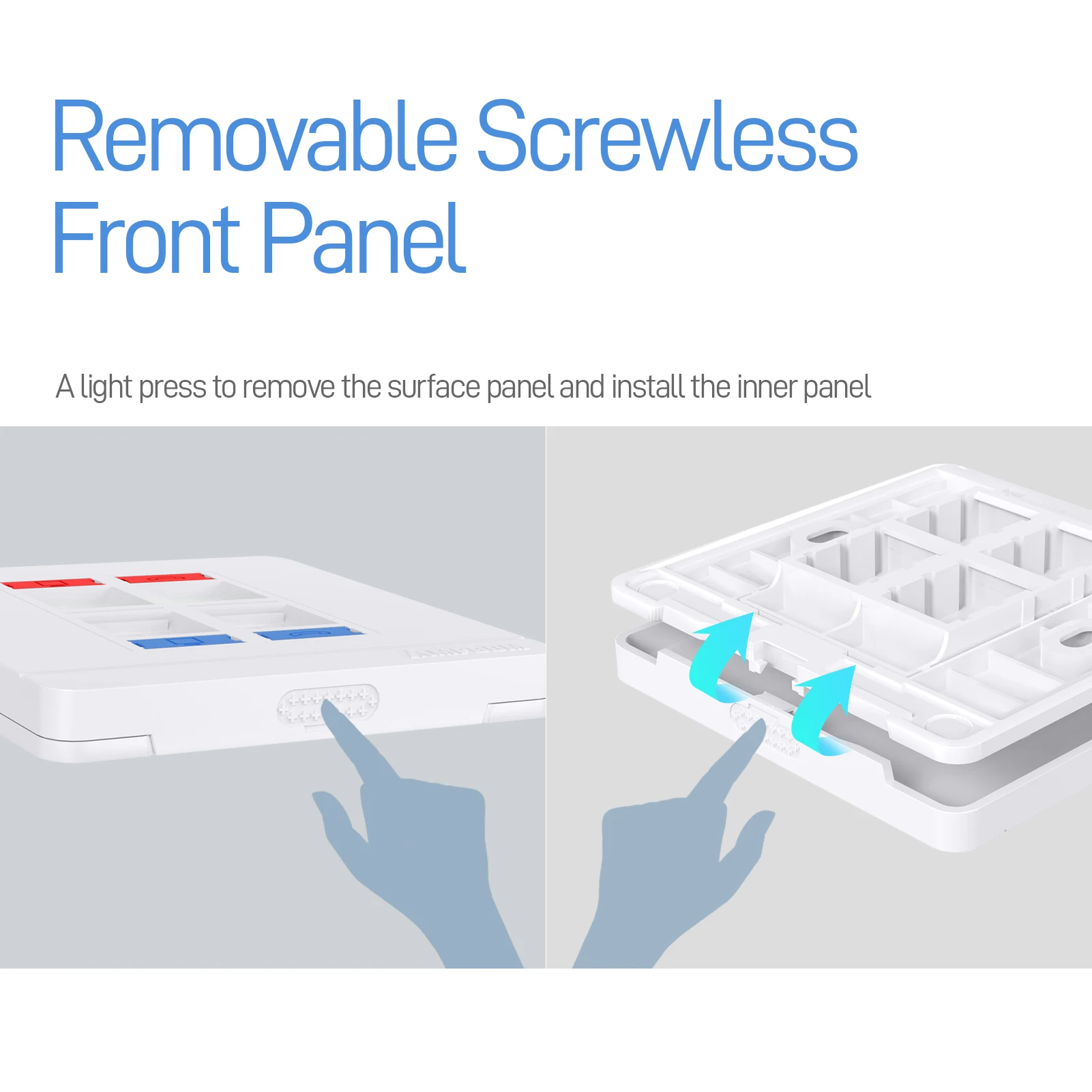 Placa de pared modular de 1/1,86 puertos de 2/4mm * 86mm compatible con cualquier tipo de conector Keystone para la conexión a los cables de red o líneas telefónicas, proporciona una apariencia limpia en la instalación del cable Ethernet, mejorar el entorno de su hogar u oficina.