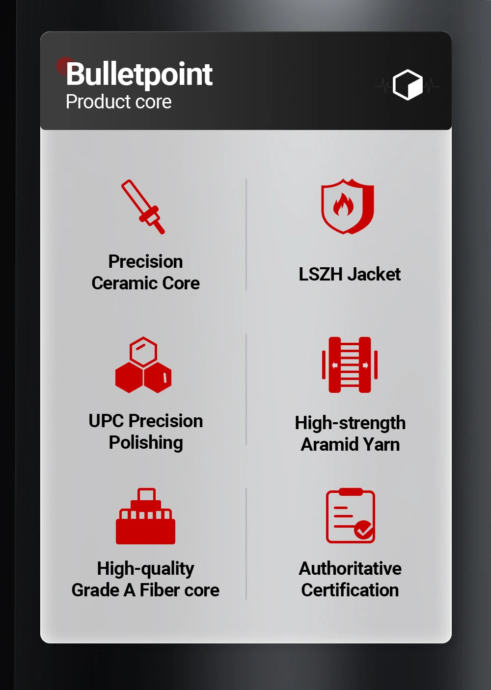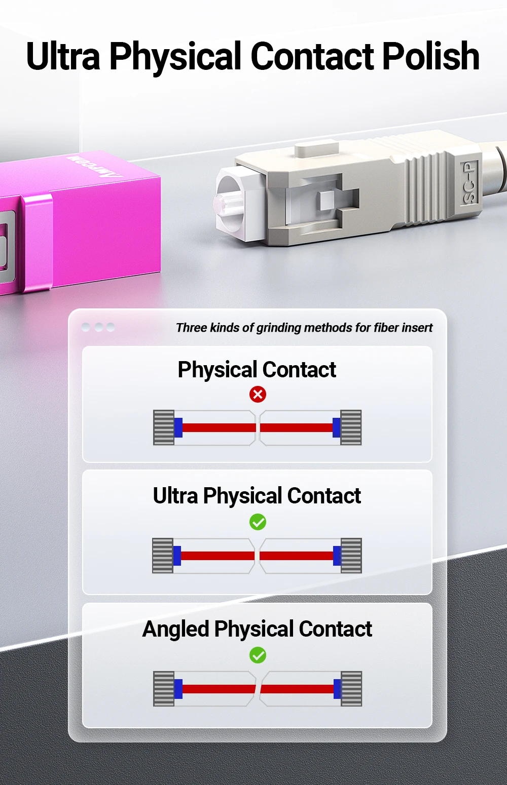 Rectificado preciso de la cara final del UPC para garantizar una transmisión de datos estable.Pérdida de inserción≤0,2 dB