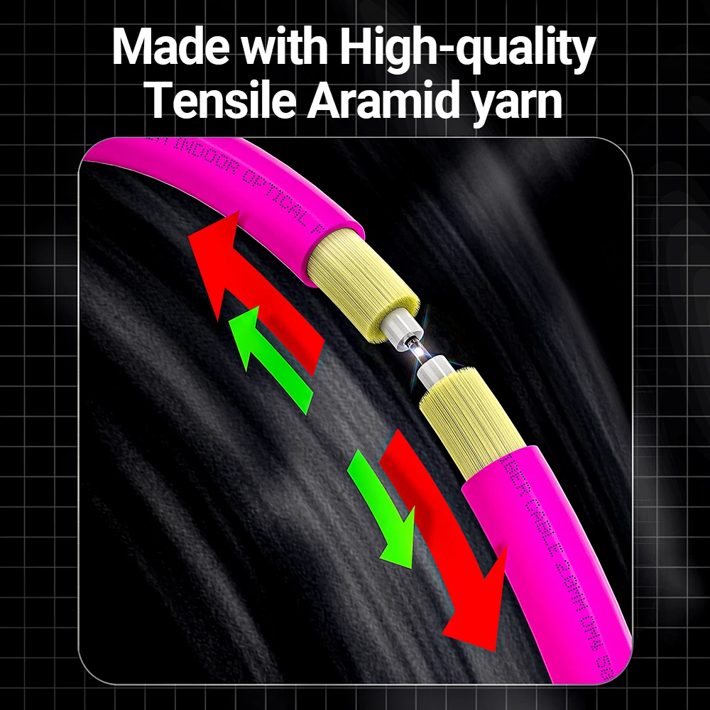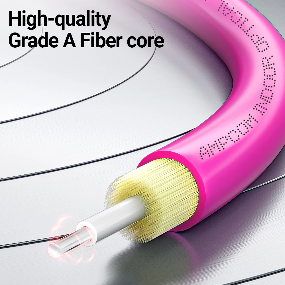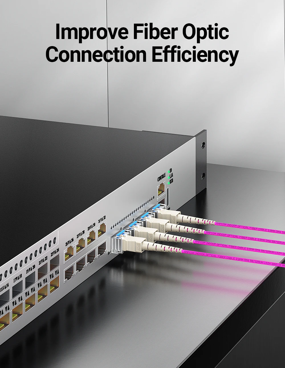 El cable de fibra óptica insensible doblado multimodo OM4 de 50/125 μm tiene menos atenuación cuando se dobla o se retuerce en comparación con los cables de fibra óptica tradicionales y esto hará que la instalación y el mantenimiento de los cables de fibra óptica sean más eficientes.También puede ahorrar más espacio para su cableado de alta densidad en centros de datos, redes empresariales, salas de telecomunicaciones, granjas de servidores, redes de almacenamiento en la nube y cualquier lugar se necesitan cables de conexión de fibra.