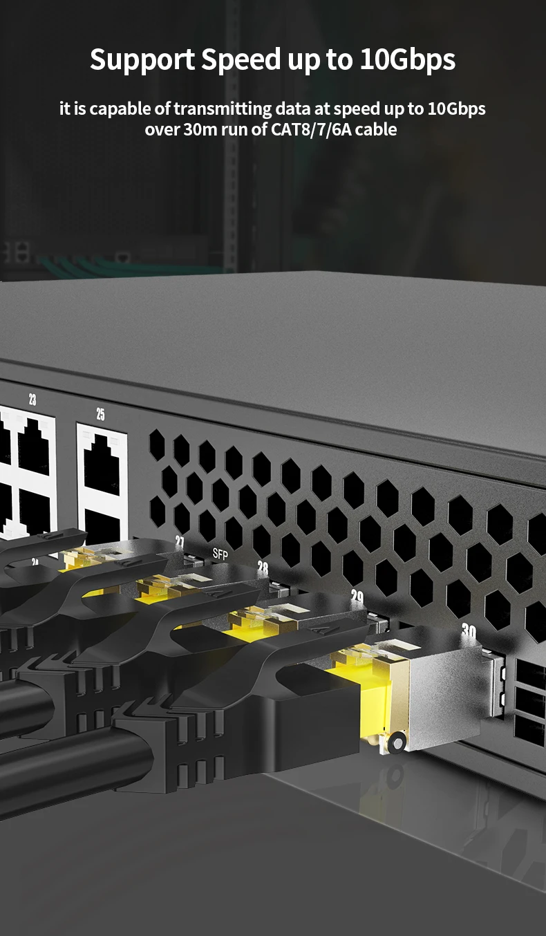 Supports Links up to 30m using CAT6A/CAT7/CAT8 Cable.