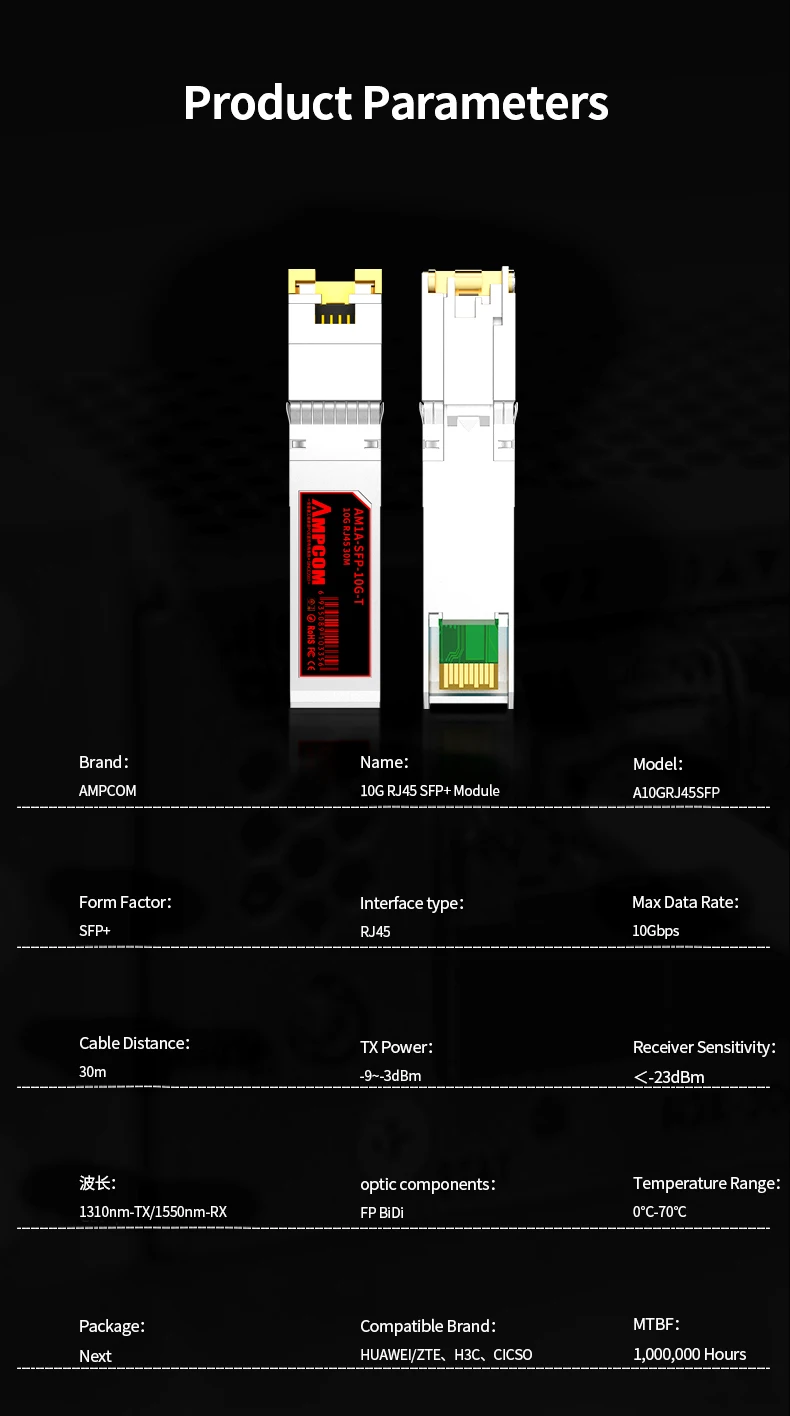 Comprar AMPCOM transceptor de cobre Ethernet SFP + a RJ45, módulo óptico de fibra RJ45 a SFP +, CAT6A/CAT7, hasta 30M