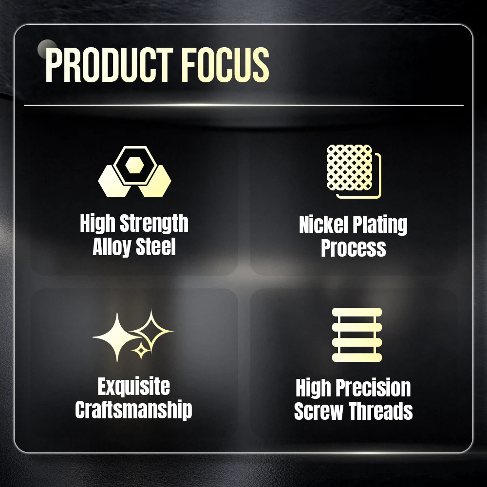 Acero de aleación de alta resistencia, sin deformación y capaz de soportar carga.Acabado de níquel resistente a la corrosión y a los ácidos: excelente antioxidante