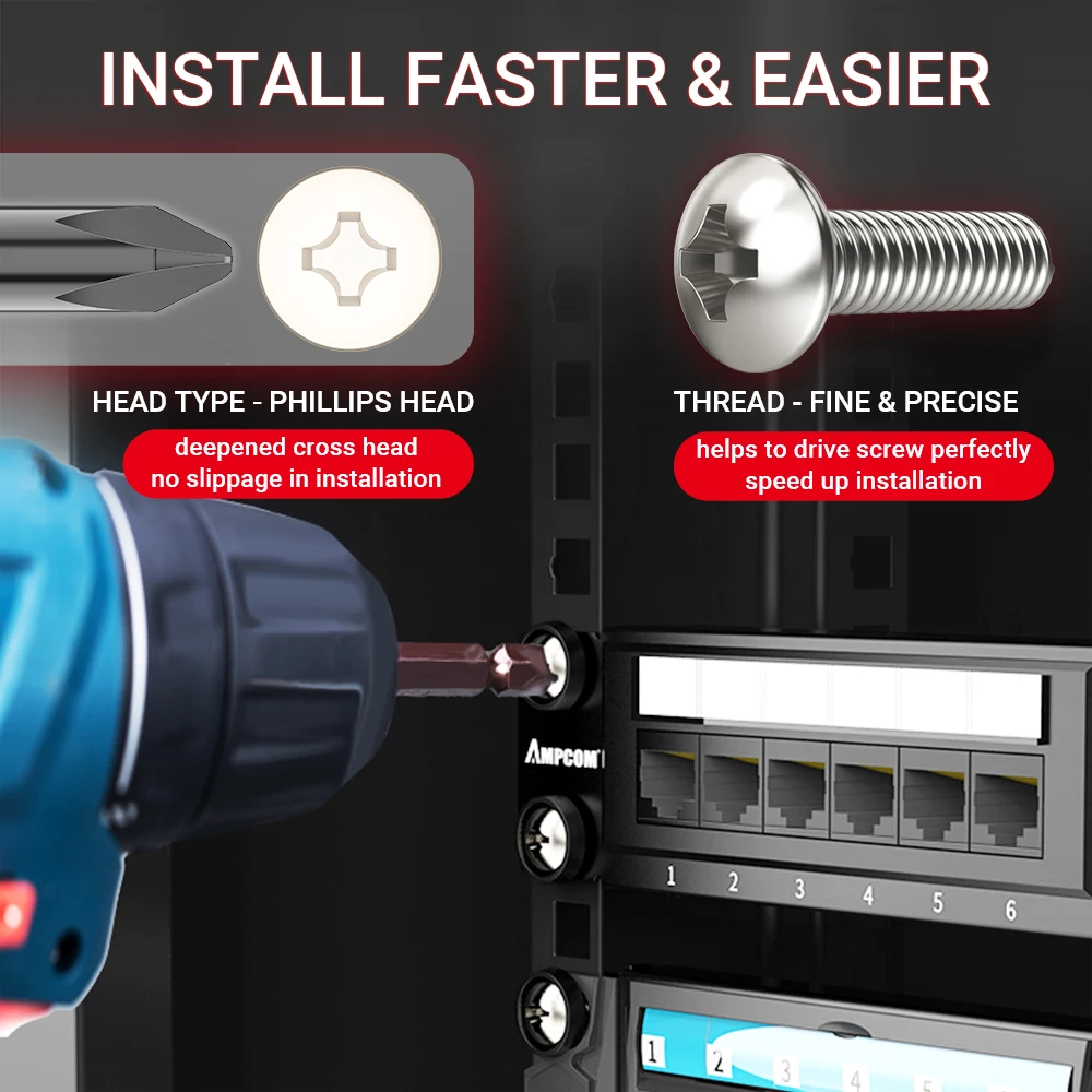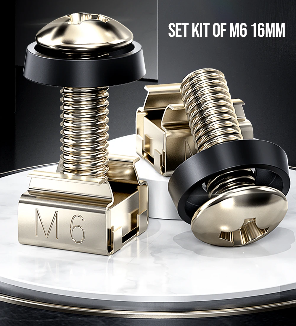 Comprar AMPCOM Tuercas, tornillos y arandelas de jaula de montaje en rack M6 x 16 mm para gabinete de servidor de montaje en rack, estantes de servidor de montaje en rack, enrutadores