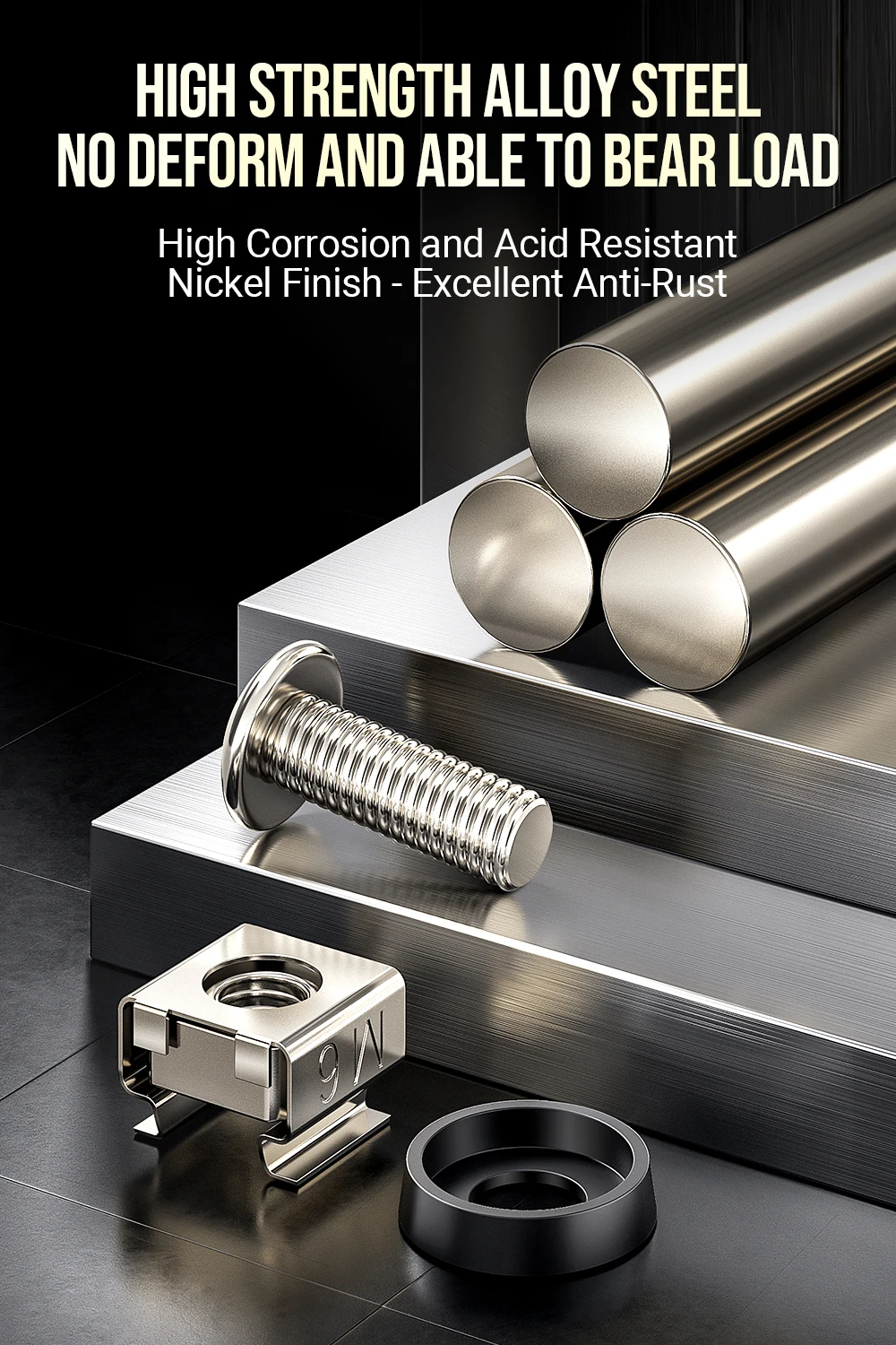 【Excelente calidad】 Las tuercas y tornillos de la jaula están hechos de acero al carbono de alta calidad.El material de acero al carbono presenta resistencia y ofrece buena resistencia a la corrosión en ambientes adversos como áreas con altas temperaturas, clima frío y alta humedad.Tienen una resistencia superior a la oxidación y una excelente resistencia a la oxidación, lo que puede garantizar un uso prolongado y prolongar la vida útil de los tornillos y tuercas.La característica resistente al desgaste hace que las tuercas y tornillos de la jaula sean más duraderos y sólidos.