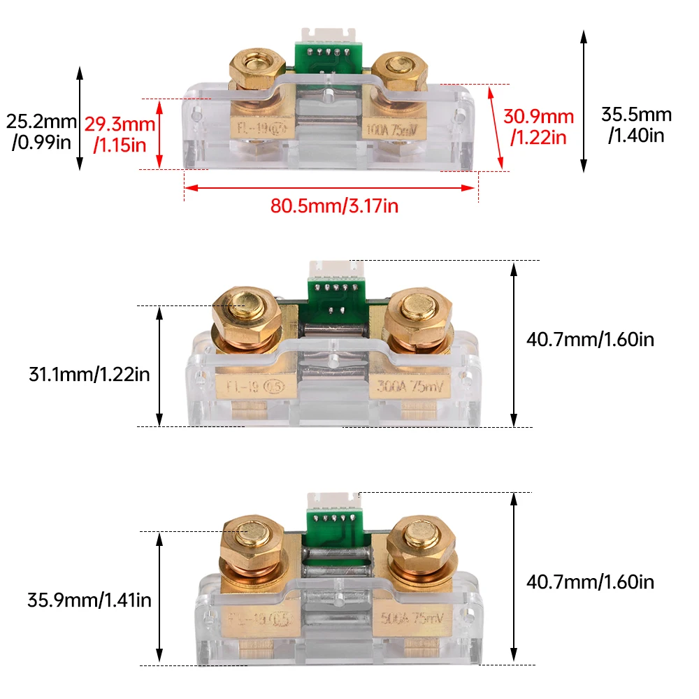 Rango de medición de corriente: 0 ~ 50A, 0 ~ 100A, 0 ~ 300A, 0 ~ 500A