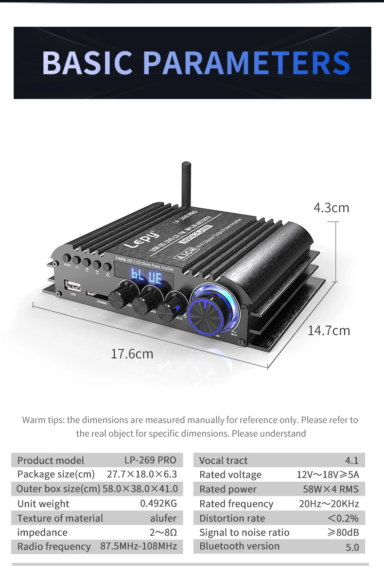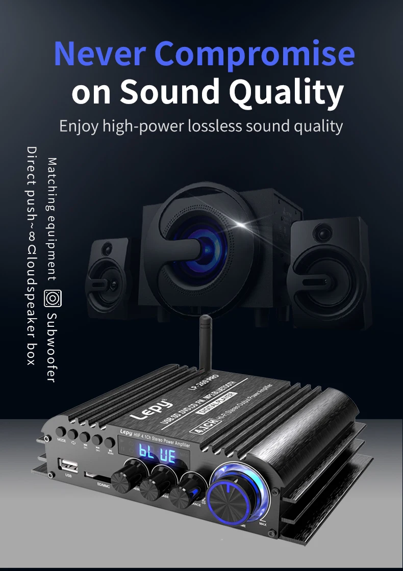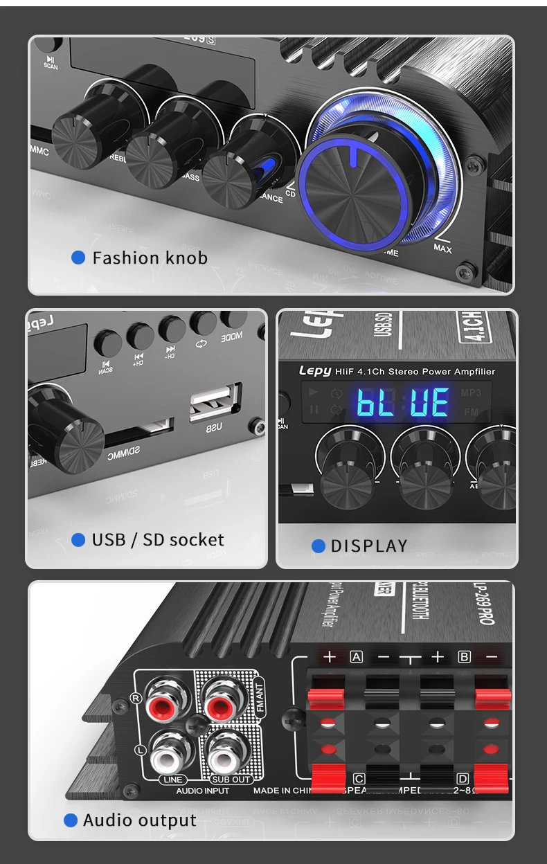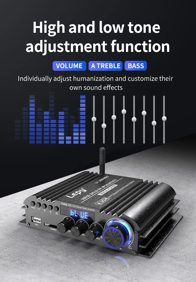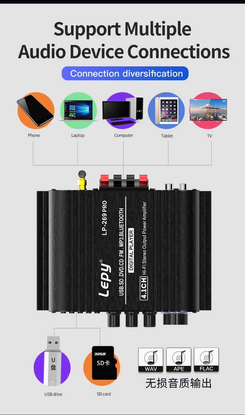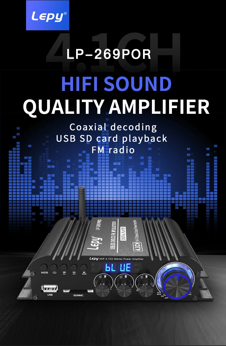 Comprar Amplificador DE 4,1 canales 269PRO, dispositivo con Bluetooth 5,0, Coaxial, USB, SD, función FM, Subwoofer, salida de cine en casa, COA