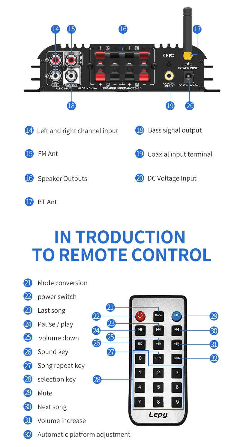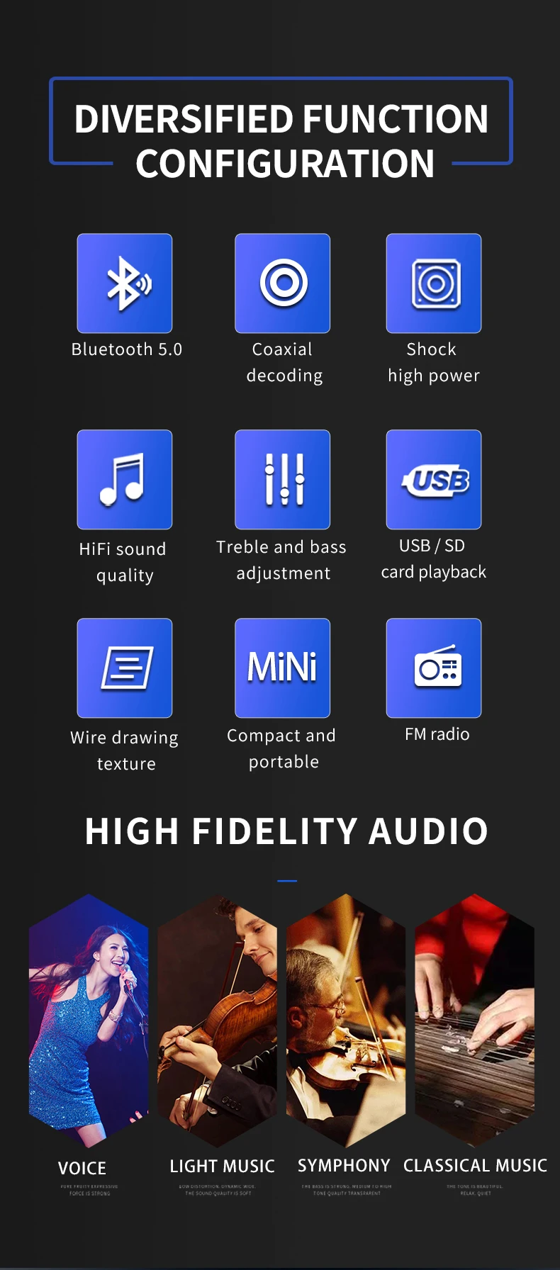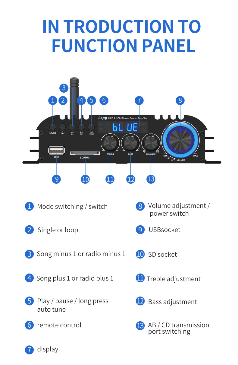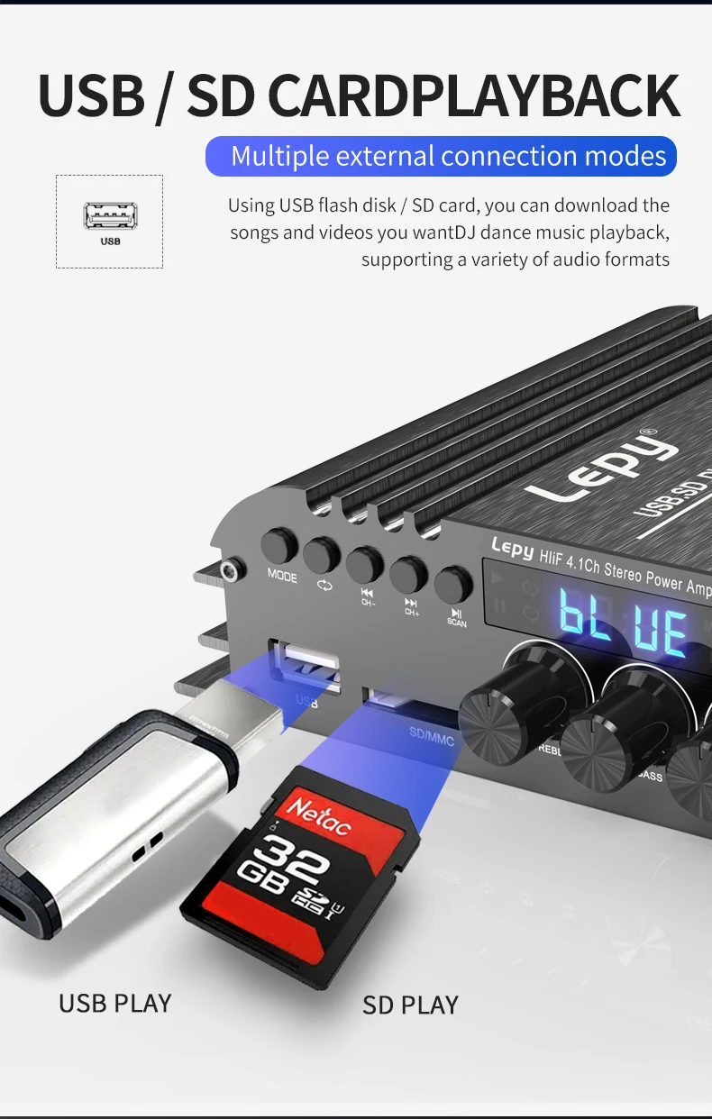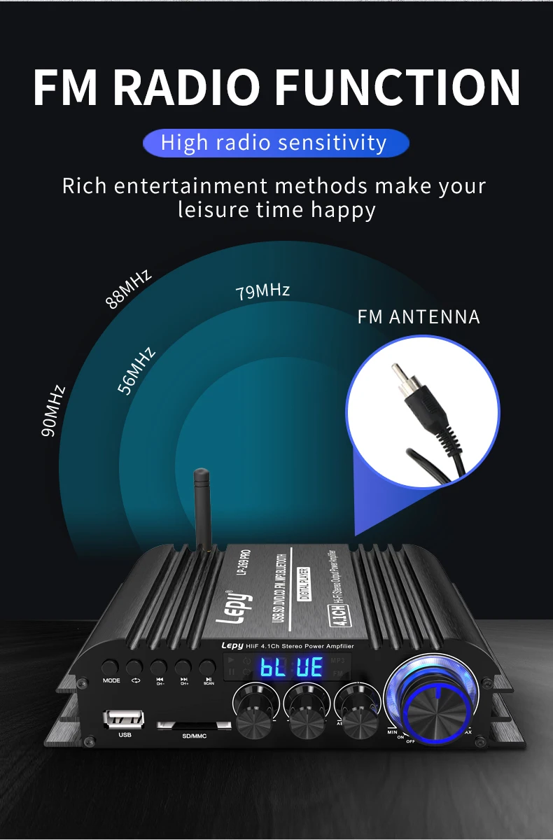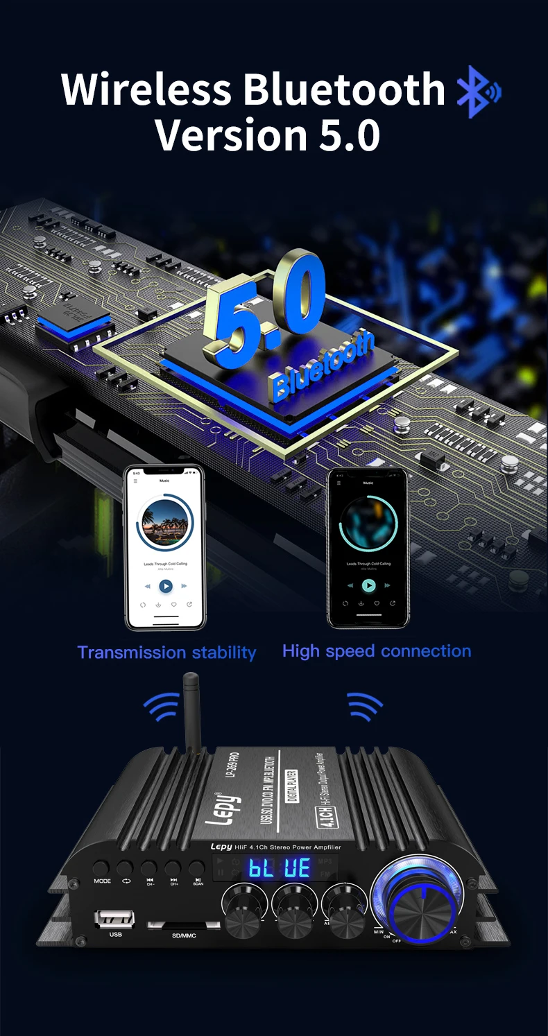 Comprar Amplificador DE 4,1 canales 269PRO, dispositivo con Bluetooth 5,0, Coaxial, USB, SD, función FM, Subwoofer, salida de cine en casa, COA