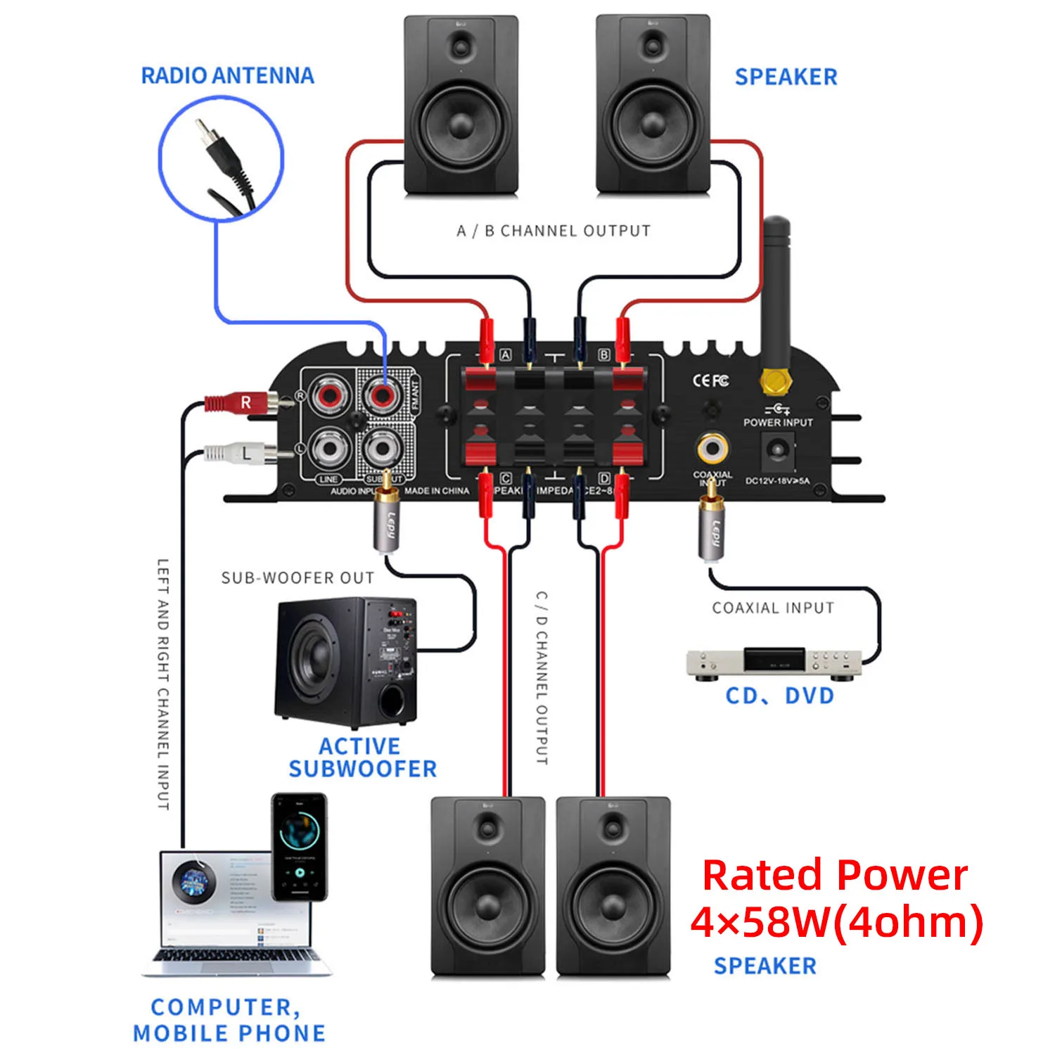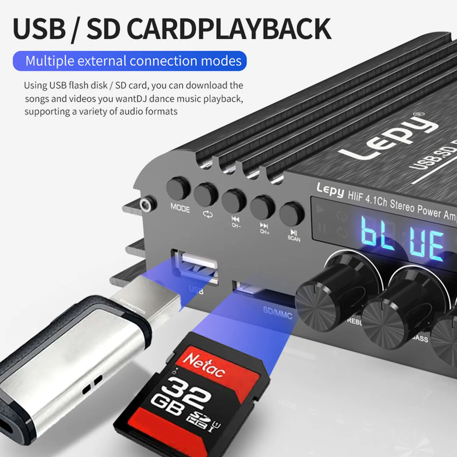 Comprar Amplificador DE 4,1 canales 269PRO, dispositivo con Bluetooth 5,0, Coaxial, USB, SD, función FM, Subwoofer, salida de cine en casa, COA