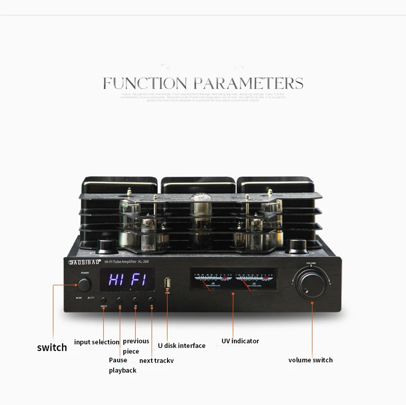 Diseño de tubo de vacío puro:Cuenta con una configuración de 7 tubos, que ofrece las características de sonido clásicas cálidas, ricas e envolventes de los amplificadores de válvula de alta calidad.