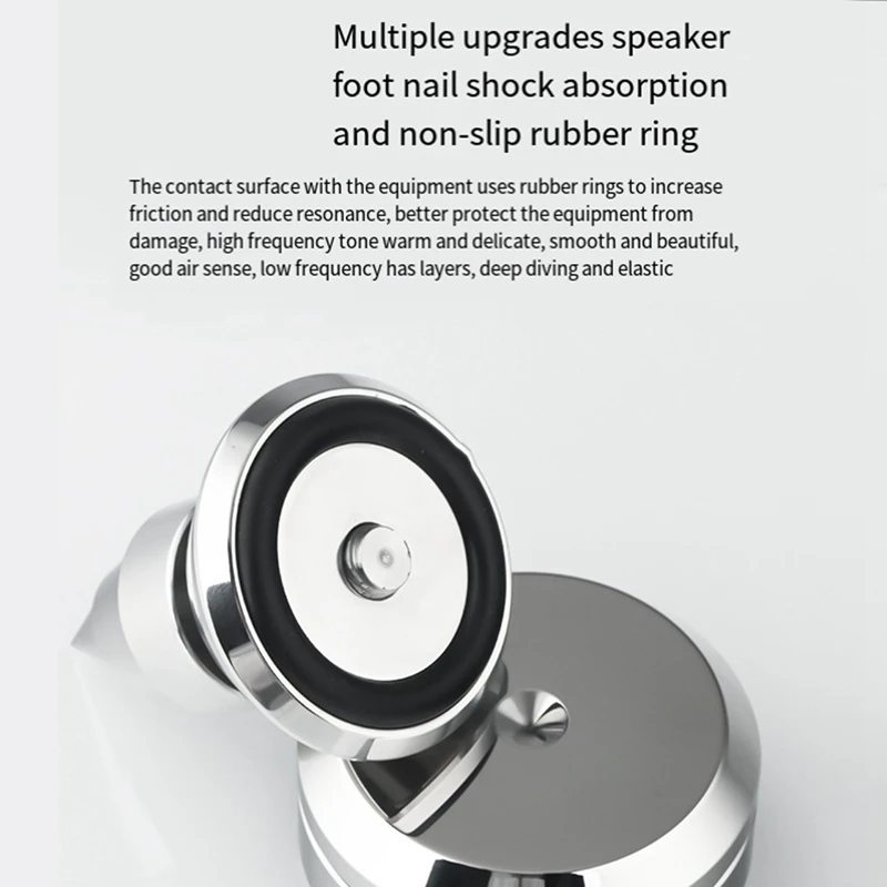 El principio de funcionamiento ES en realidad muy simple, es decir, al reducir el área de contacto y aumentar la presión del equipo de altavoces, suprimiendo así la onda directa estable del salto final instantáneo generada por la vibración.También absorbe y atenúa la vibración del propio equipo y bloquea las vibraciones externas.Para lograr estos dos puntos, los materiales utilizados en el amortiguador deben tener las características de alta calidad, alta dureza y alta tasa de atenuación de vibraciones.