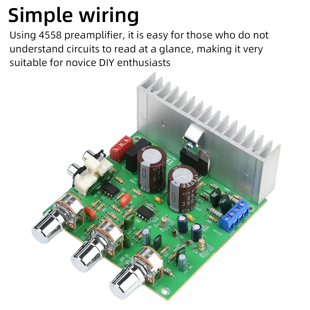 2.Cableado sencillo: utilizando un preamplificador 4558, es fácil para aquellos que no entienden que los circuitos lean de un vistazo, lo que lo hace muy adecuado para principiantes entusiastas del bricolaje.