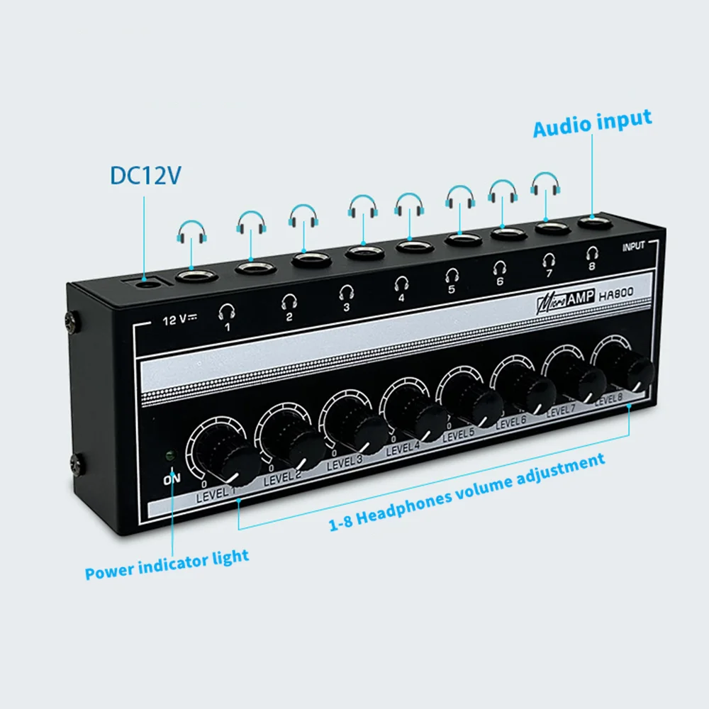 Comprar Amplificador de Audio HA800 para auriculares Mini amplificador de micrófono estéreo de Audio Ultra compacto de 8 canales con adaptador de corriente