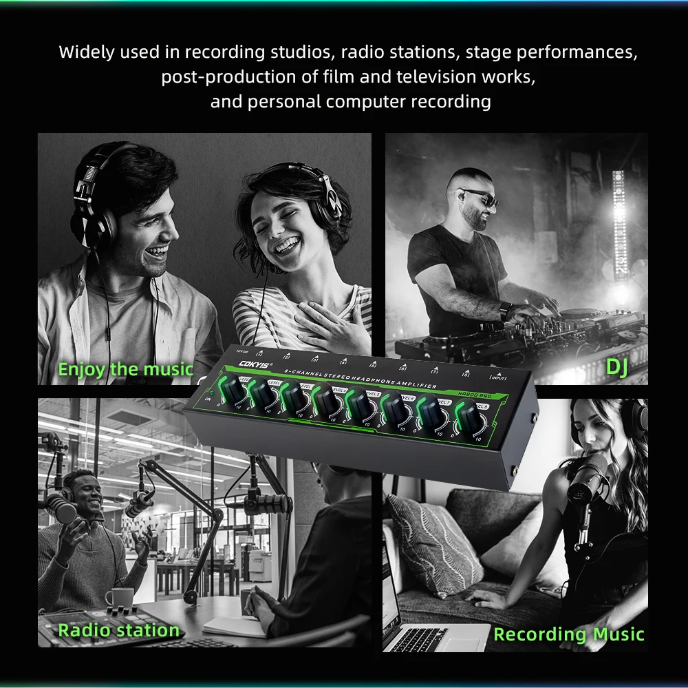 Amplificador de auriculares 8 amplificadores estéreo de alta potencia brindan un sonido estéreo con calidad de estudio en cada ritmo.Al controlar el nivel de salida de cada canal, puedes sintonizar el sonido a la perfección.El amplificador operacional 4580 de ruido ultrabajo ofrece un rendimiento excepcional y un sonido nítido.