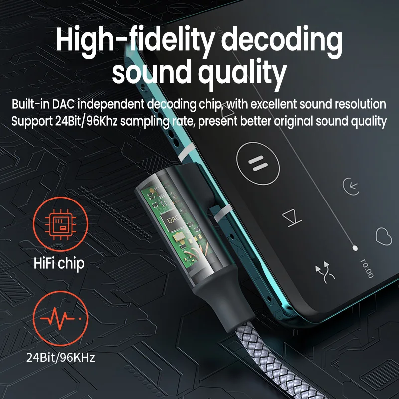 AMPLIFICADOR DE AURICULARES HIFI DAC USB tipo C a conector de auriculares de 3,5mm, adaptador de audio de 24 bits, 96kHz, decodificador Digital, convertidor AUX