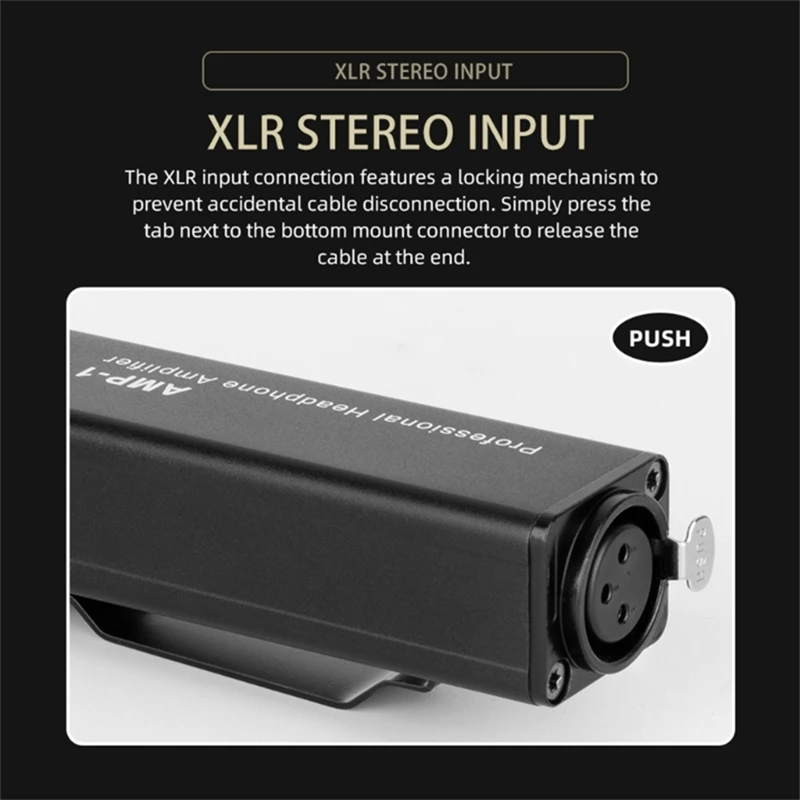 Conmutador de ganancia alta/baja para un rendimiento óptimo de los auriculares.La conexión de entrada XLR cuenta con un mecanismo de bloqueo para evitar la desconexión accidental del cable.Simplemente presione la pestaña al lado del conector de montaje inferior para liberar el cable en el extremo.