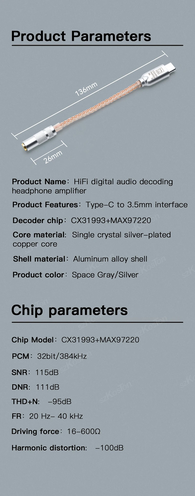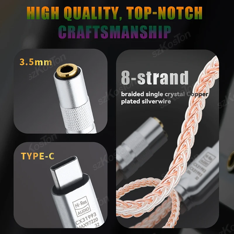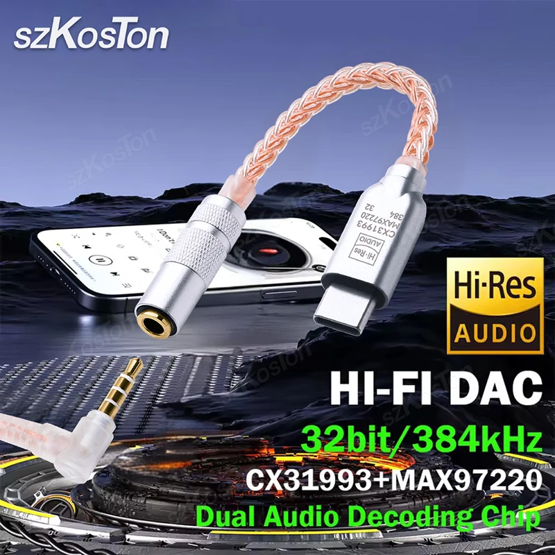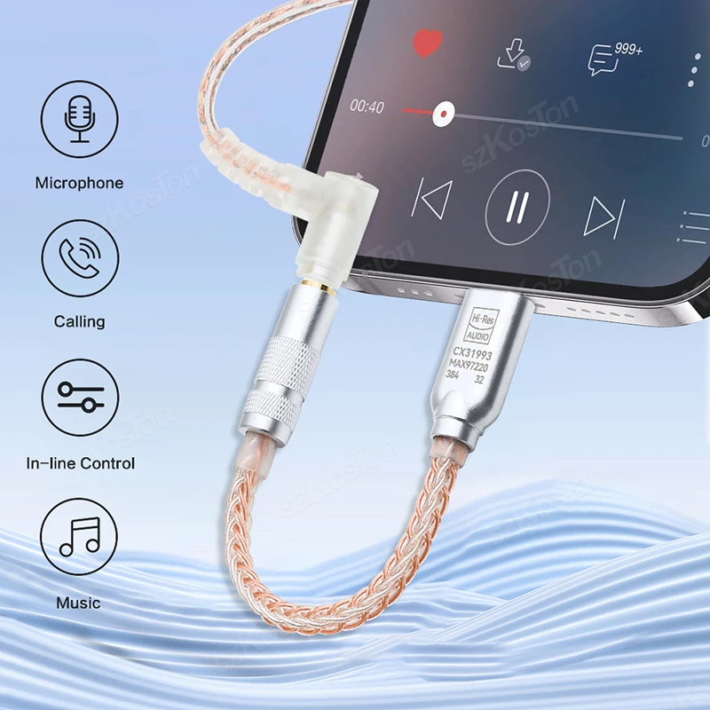 Chip DAC CX31993 para calidad de sonido de alta fidelidad: chipset integrado de alta resolución con convertidor de audio digital (DAC), el adaptador de auriculares tipo C ofrece una frecuencia de muestreo de hasta 384 KHz/32 bits para mejorar la calidad de sonido original de su teléfono móvil.