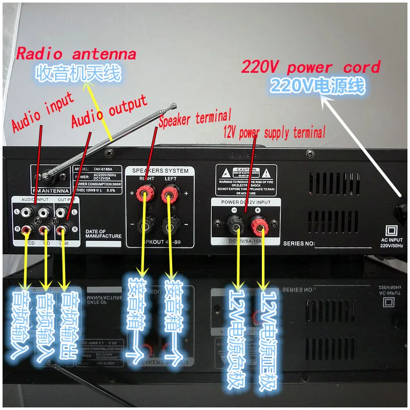 AMPLIFICADOR Bluetooth de 300W x 2, amplificador de Audio de alta potencia para coche de 220V y 12v, Subwoofer, amplificador de Audio profesional para el hogar, TAV-6188BT