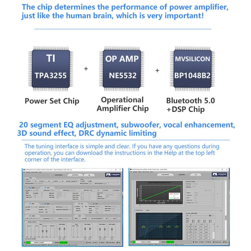Comprar Amplificador Bluetooth TPA3255 2x300W BT5.0, módulo 2,0 estéreo de alta potencia, BRU5, DSP, PC, Control de interfaz de usuario, NE5532P