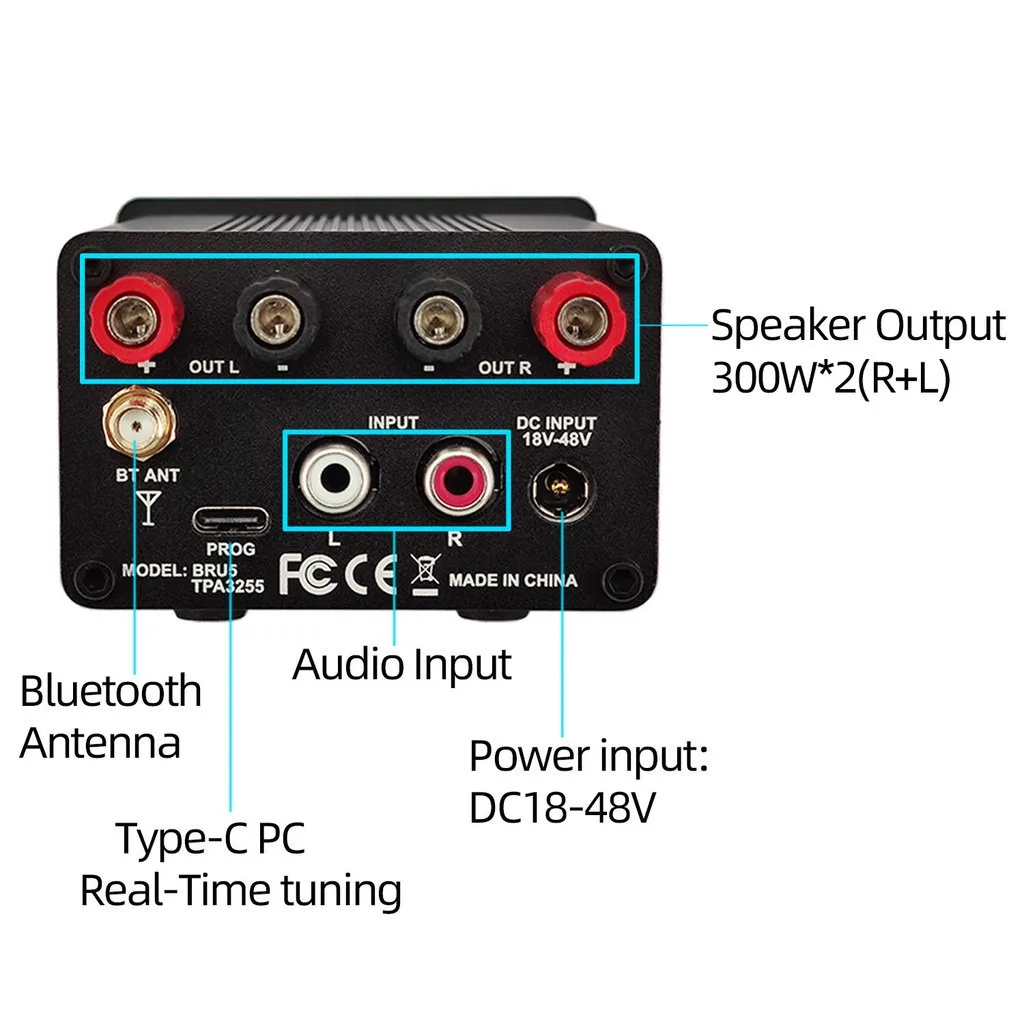 TPA3255 Amplificador Bluetooth 2x300W Módulo BT5.0 Estéreo 2,0 de alta potencia BRU5 DSP PC Control de interfaz de usuario