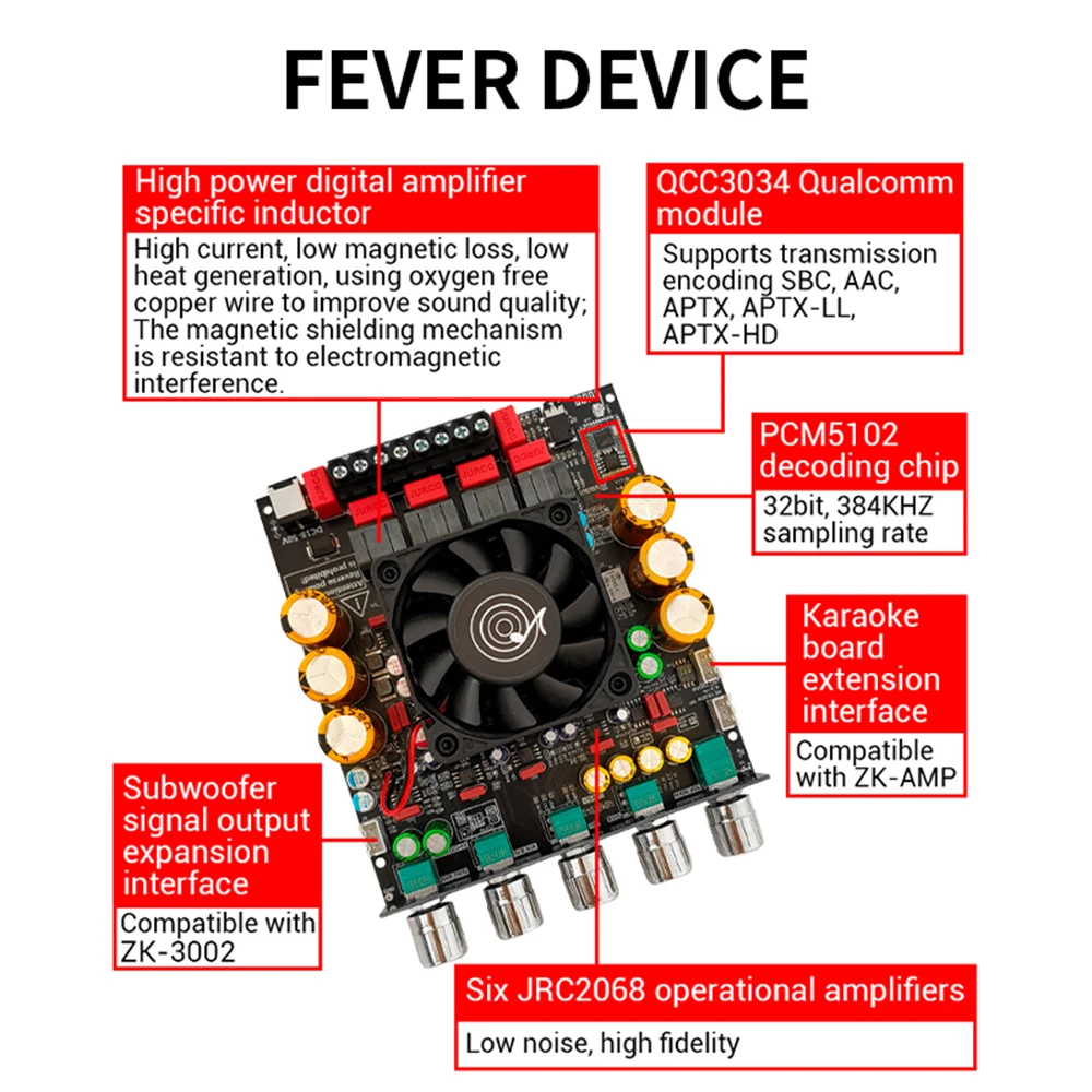 1. La placa amplificadora de potencia Bluetooth de paso alto ZK-APTX3 admite APTX, utilizando dos TPA3255, seis JRC2068, el rendimiento del chip es excelente.