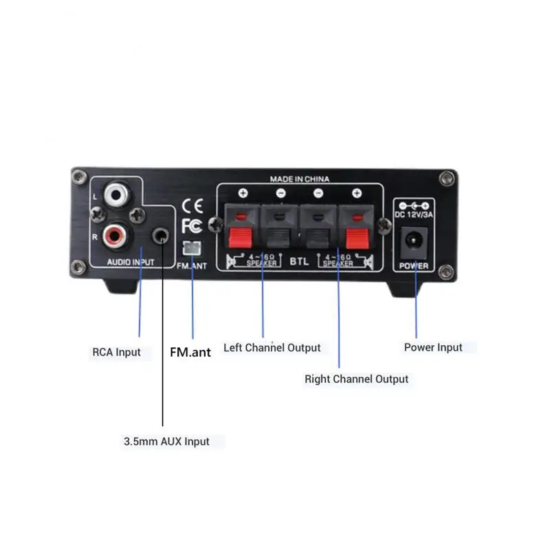 5. Control remoto y compatibilidad: Este producto es compatible con dos altavoces pasivos de 4-16ohm, viene con un control remoto para un fácil ajuste de audio, compatible con tarjeta SD y reproductor de MP3 USB, conexión inalámbrica BT, y enchufe estadounidense, lo que lo hace perfecto para sistemas de cine en casa. Los usuarios pueden cambiar fácilmente entre los diferentes modos de entrada y ajustar el volumen de forma remota, lo que lo convierte en una opción conveniente y fácil de usar.