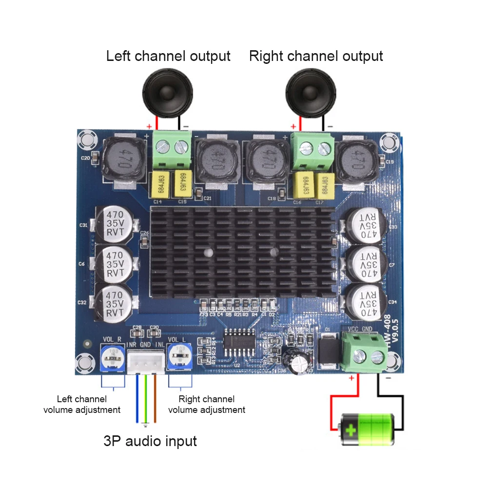 Amplificador Digital de Doble Canal con Cable Subwoofer, Placa de Audio, Altavoz Estéreo, Módulo de Alimentación, TPA3116D2, 120Wx2, 1 Unidad