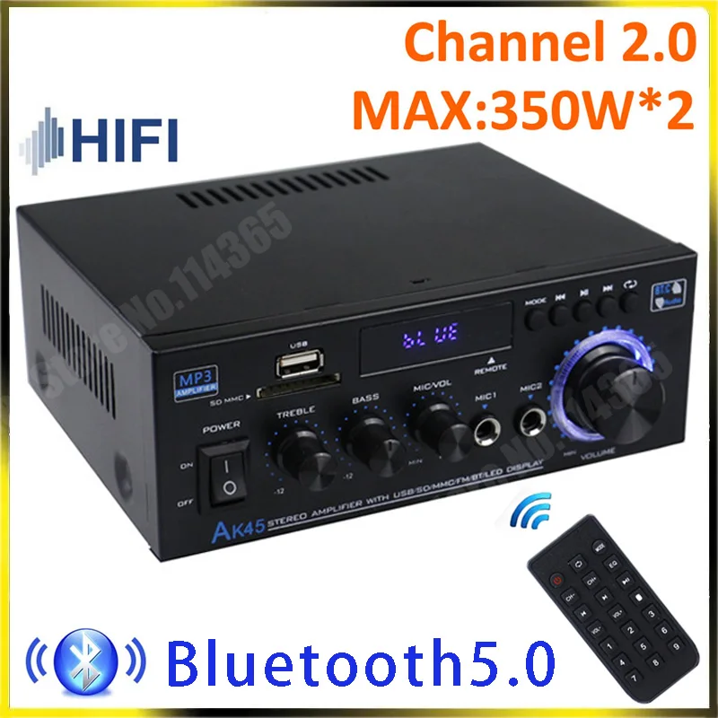 Comprar Amplificador Digital HiFi AK45 con Bluetooth, amplificador de sonido envolvente 2,0, Canal MP3, compatible con 90V-240V, máx. 350W x 2, para casa y coche
