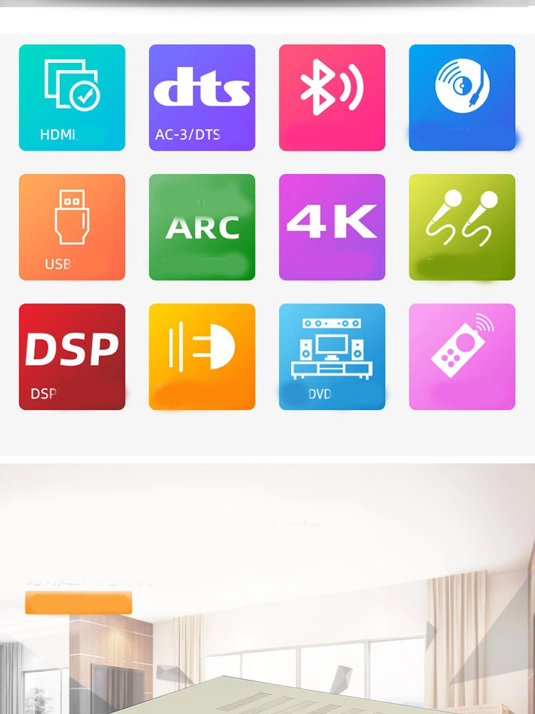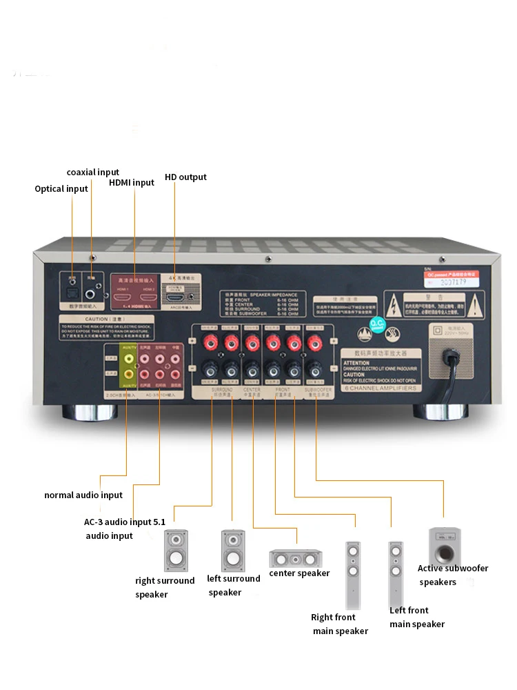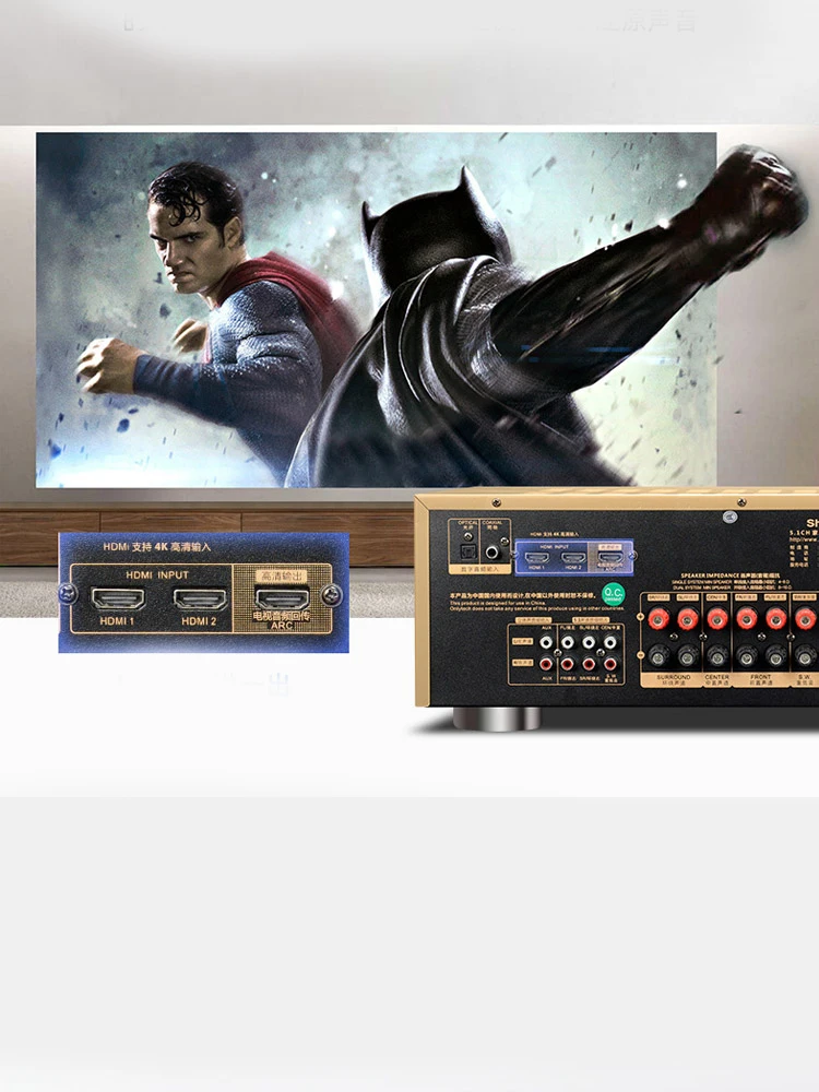 Amplificador Hifi de 1200W, amplificador de fiebre de alta potencia, amplificador de altavoz, sistema de sonido de cine en casa 5,1, 5,0, Bluetooth, HDMI, fibra Coaxial
